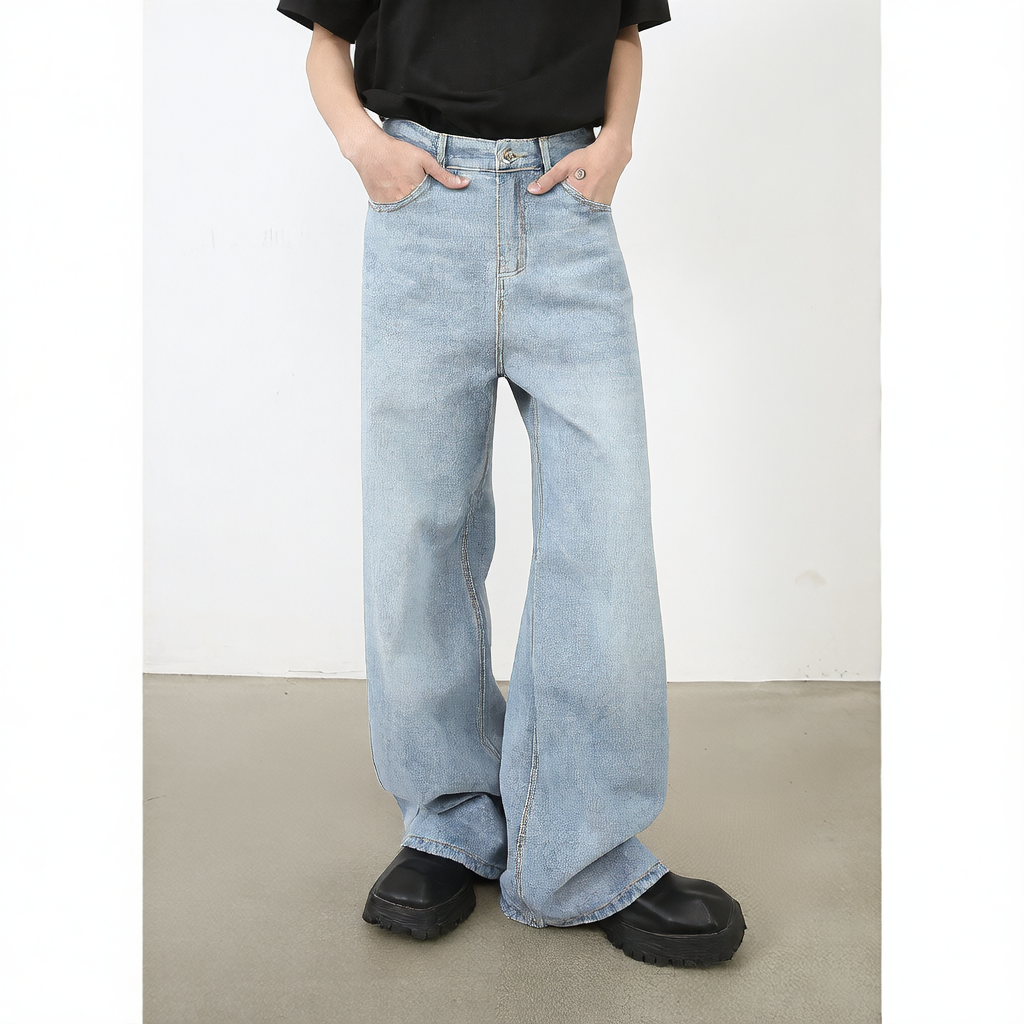 Light Blue Stitched Wide Leg Jeans for men – High-Waisted Loose Fit Comfort