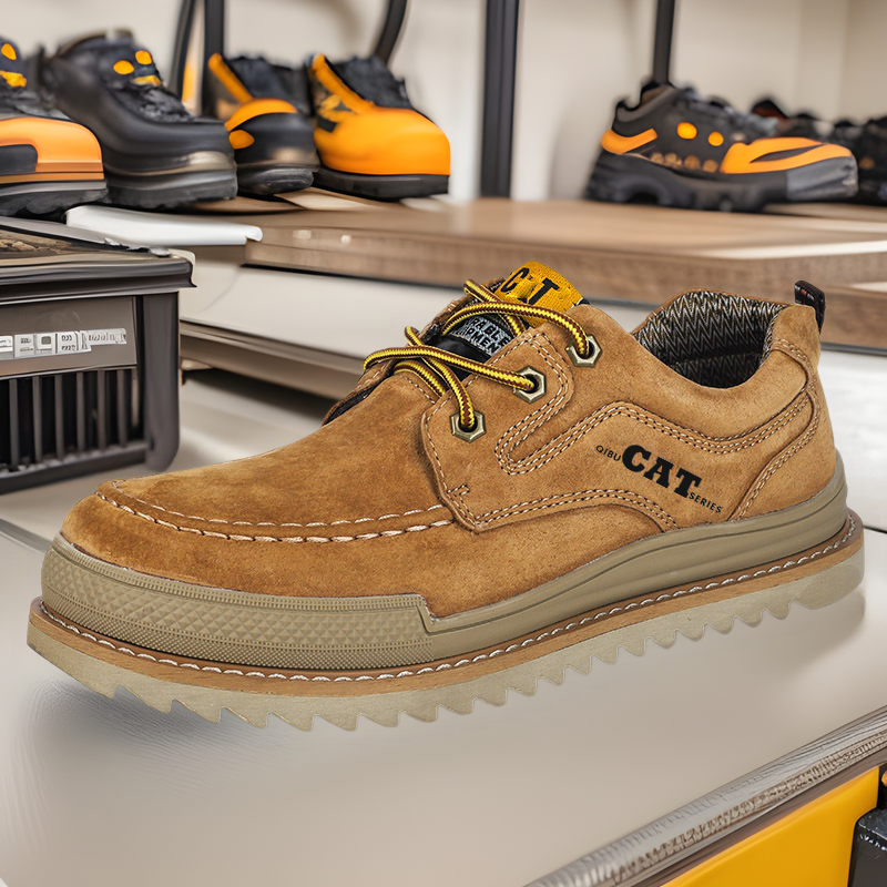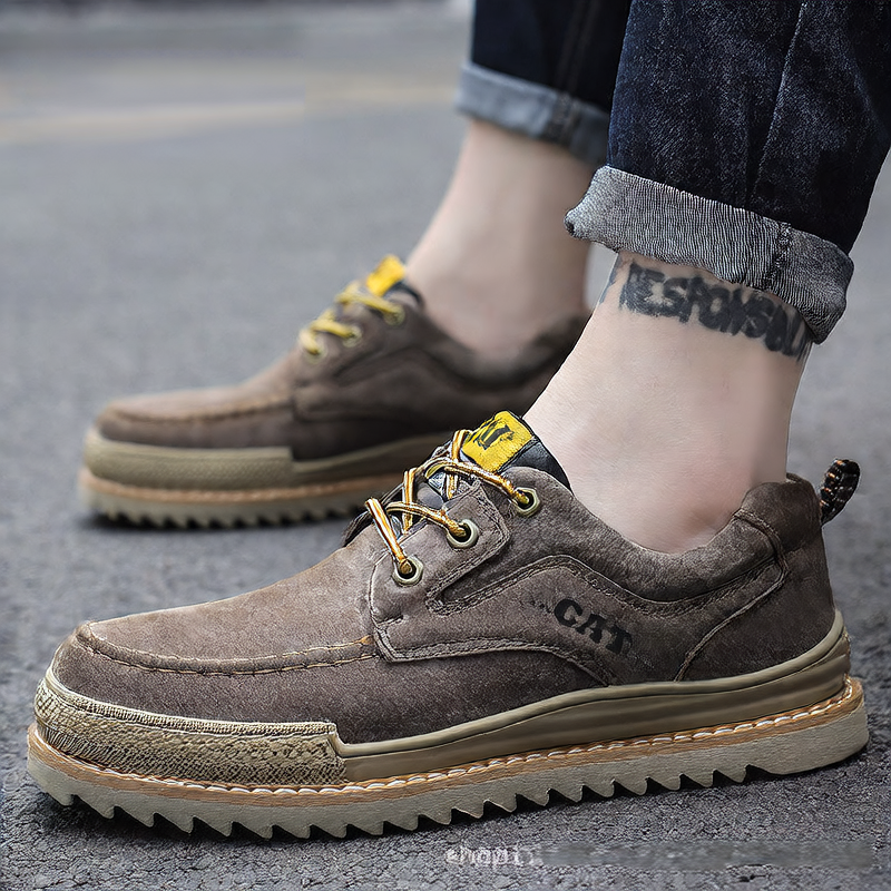 Men Genuine Leather Vintage Work Boots – Cowhide Retro Mid-Top Lace-Up Desert Style Boots with TPR Sole