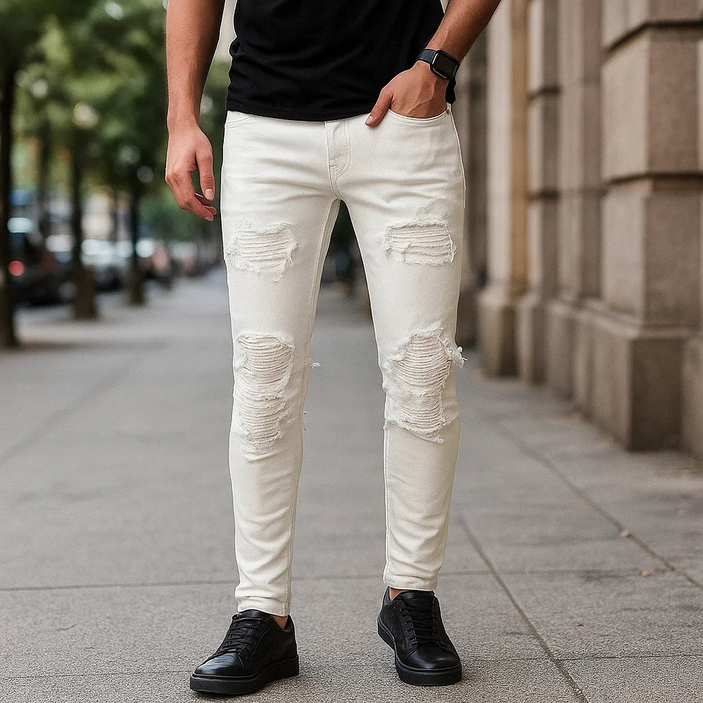 Nine-Point Knee Hole Jeans For Men Slim Korean Version AliFinds