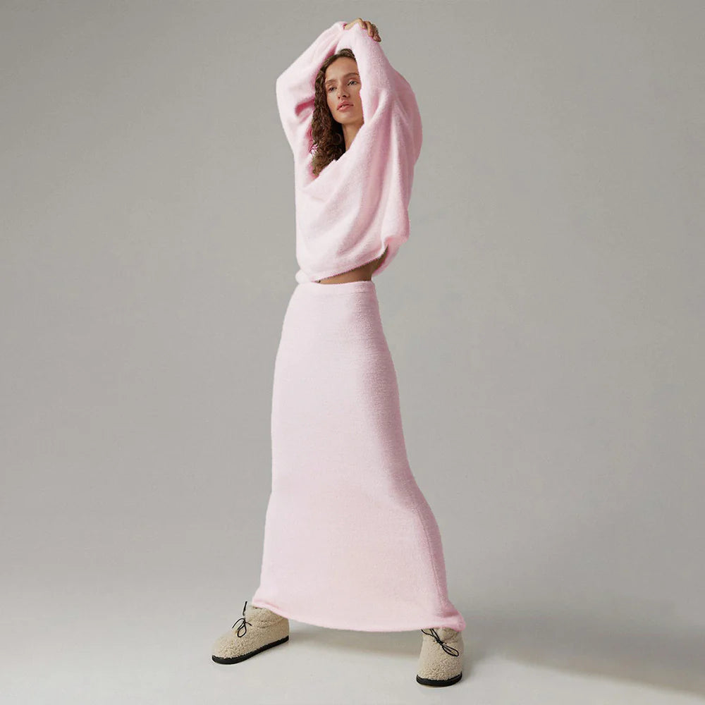 Women’s Knitted Bat-Sleeve Sweater & Skirt Set – Sweet Elegance with Effortless Comfort