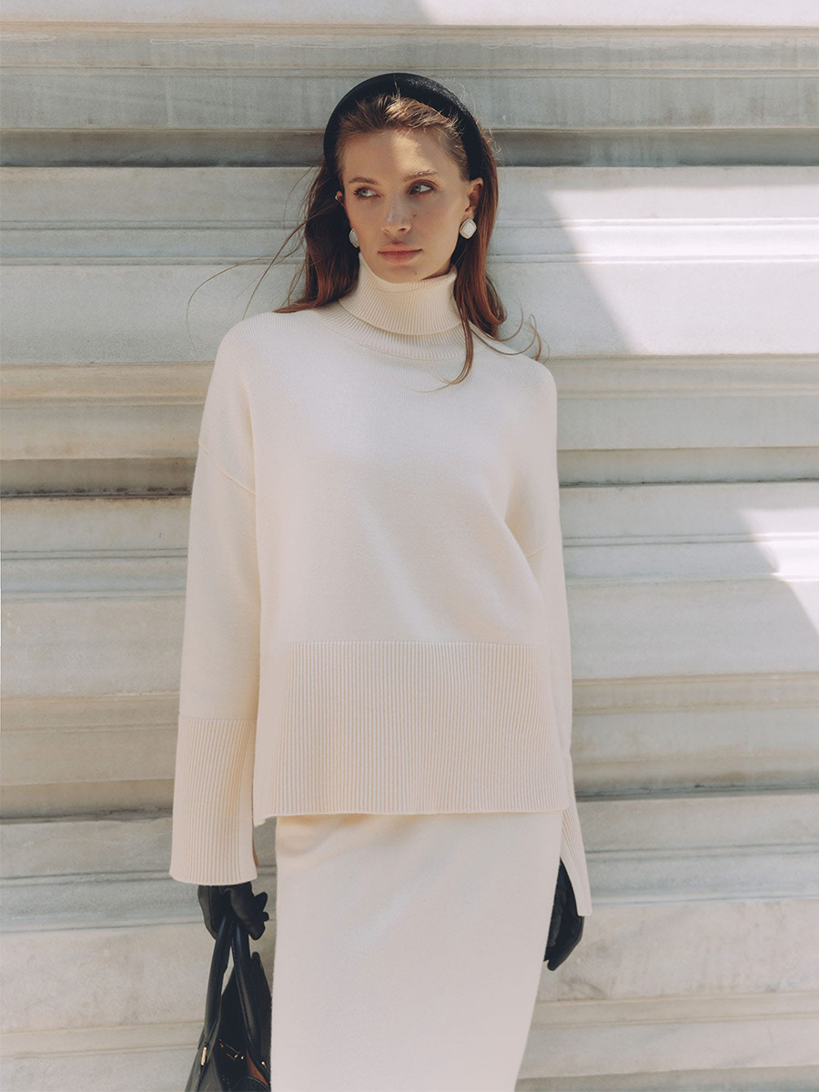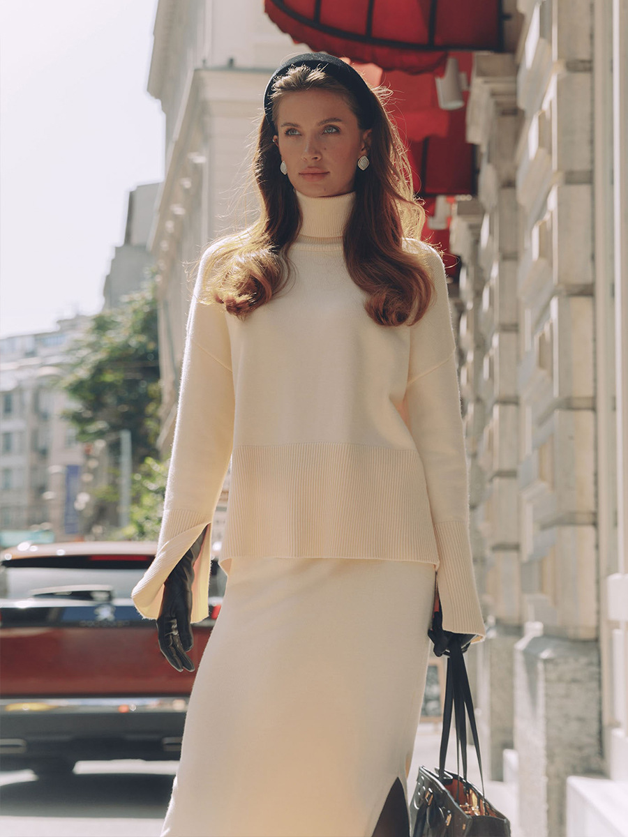 ✅ "The flowy sweater with the split skirt makes me look elegant without trying too hard." – Aria, 27 (Event Planner)