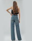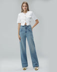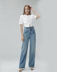 👖 Mop-Hose mit hoher Taille und weitem Bein für Damen – Elastischer Denim in Vintage-Blau (Baumwollmischung) – Frischer und süßer Stil