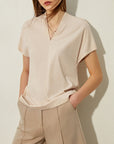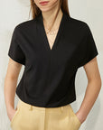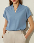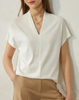 💫 Damen-Shirt aus fließender Seide mit V-Ausschnitt – Slim-Loose-Fit-Oberteil (Viskosemischung) – 3D-strukturiertes Pendler-Essential