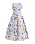 🌸 Trägerloses Damenkleid mit Blumenmuster – Romantisches Midikleid (Lila/Helles Apricot) – Sommerkleid aus Polyester