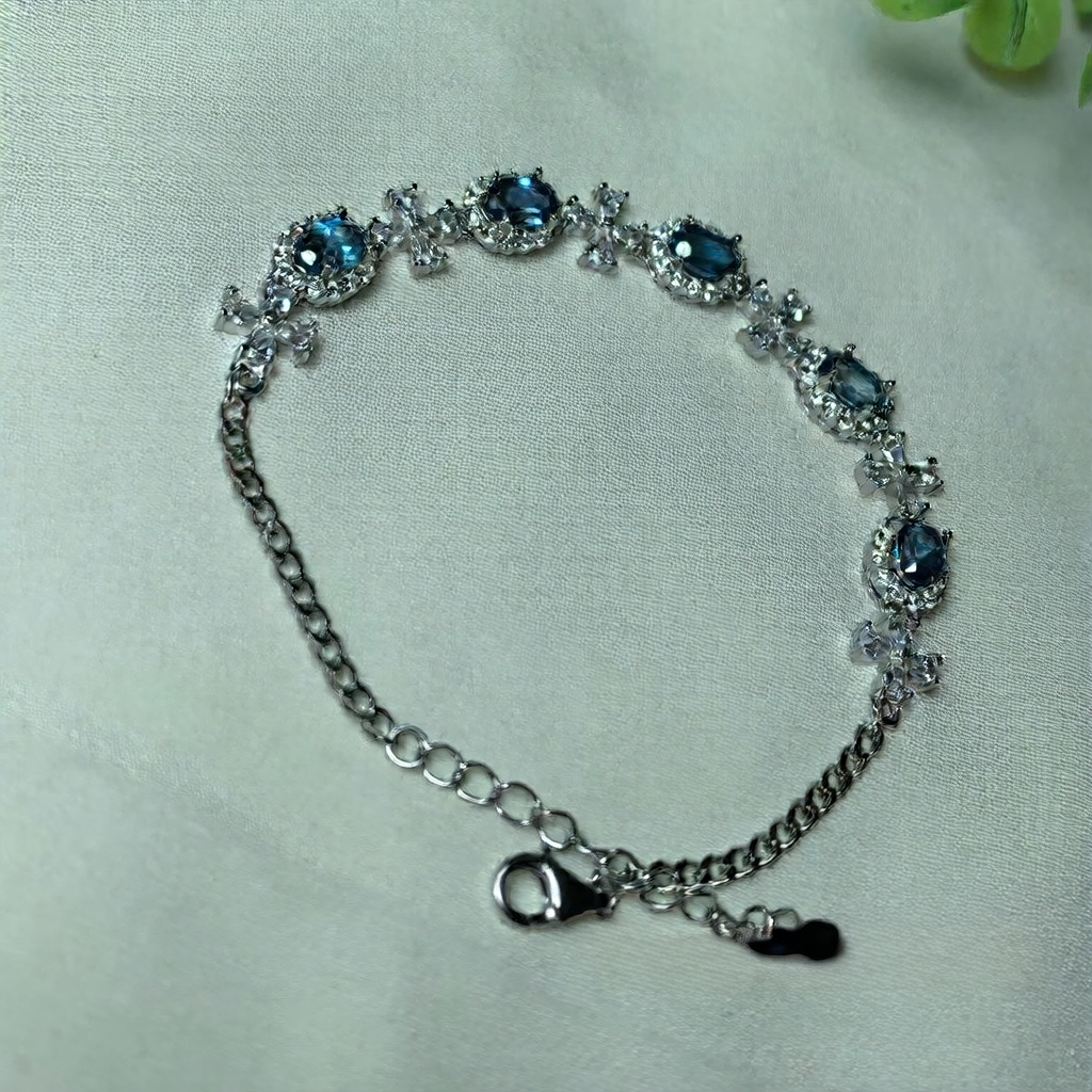 Women Natural Swiss Blue Topaz Bracelet – 925 Sterling Silver Handmade Adjustable Gemstone Jewelry