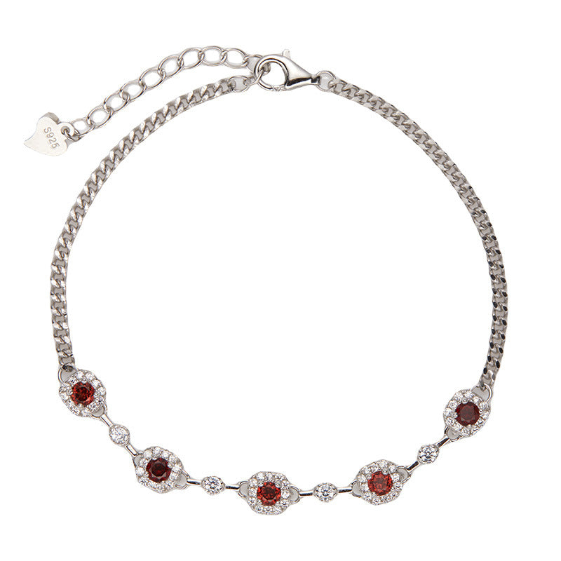 Women Full Drill S925 Sterling Silver Bracelet – Natural Garnet Sapphire Geometric Diamond-Set Luxury Chain Jewelry