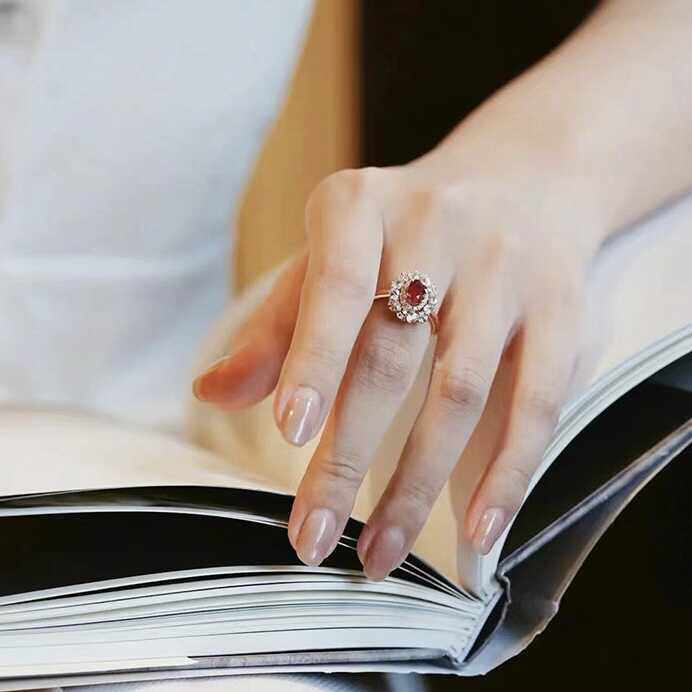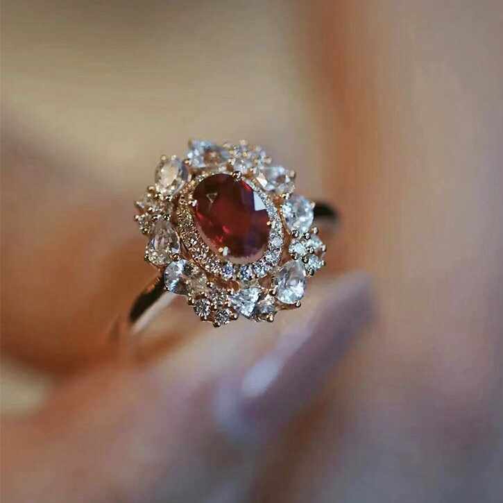 Women Natural Ruby Adjustable Opening Ring – 18K Gold Plated Sterling Silver Vintage French Diamond Accent Ring