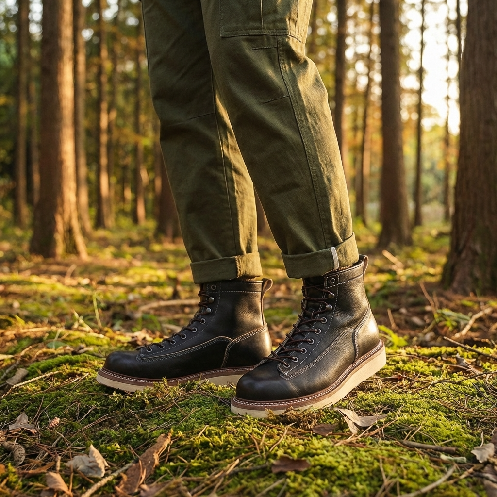 Men’s Genuine Leather Martin Boots – Cowhide Lace-Up Tooling Boots with High Shaft, Round Toe