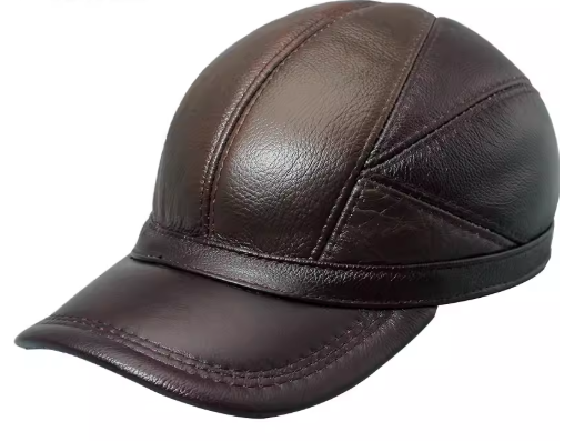 Men’s First-Layer Cowhide Leather Baseball Cap – Adjustable Dome Design with Flat Brim