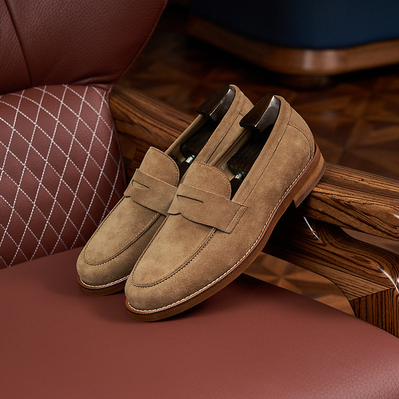 Men Genuine Leather Loafers – British Style Slip-On Cowhide Dress Shoes with Soft Sole Comfort