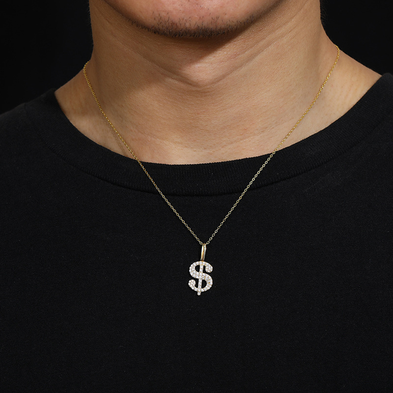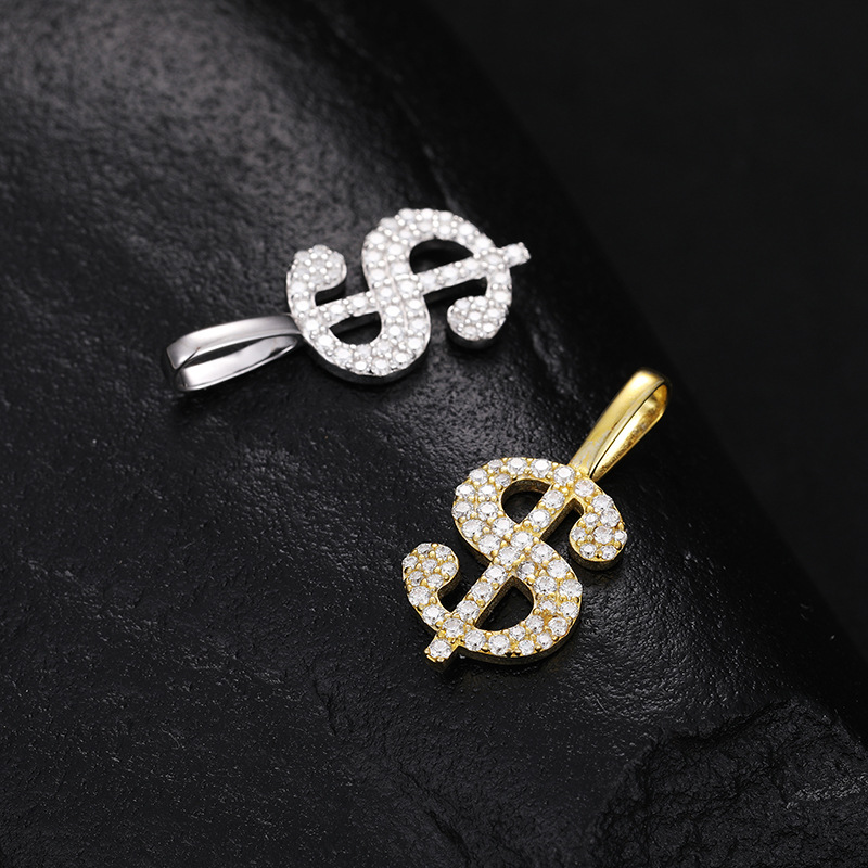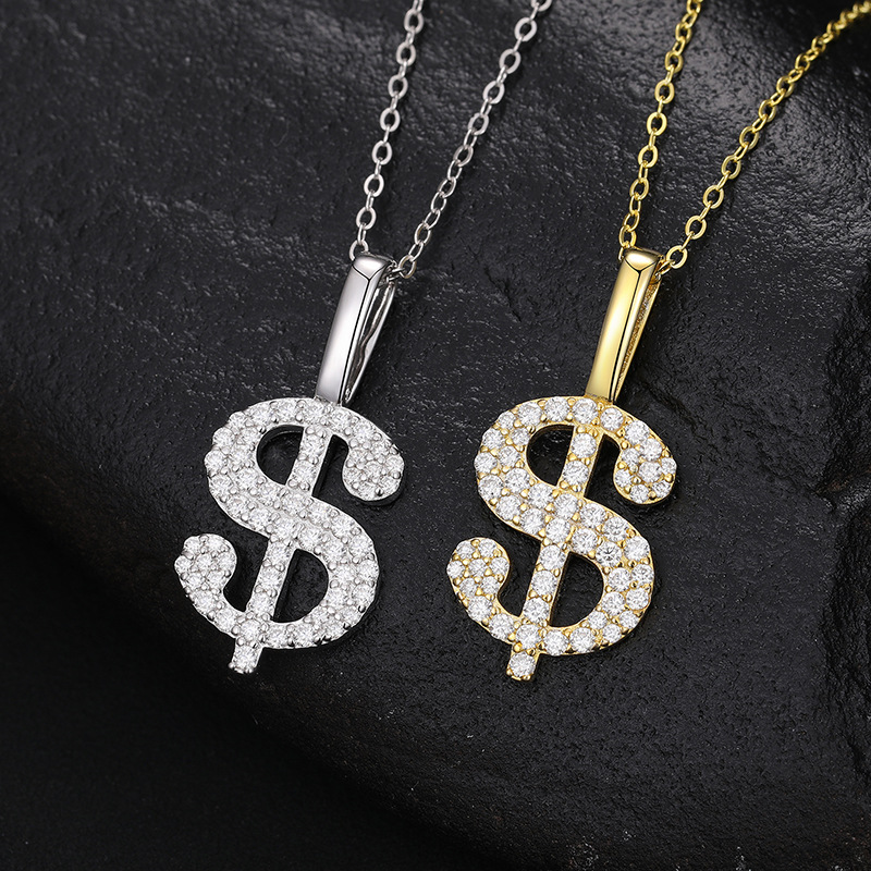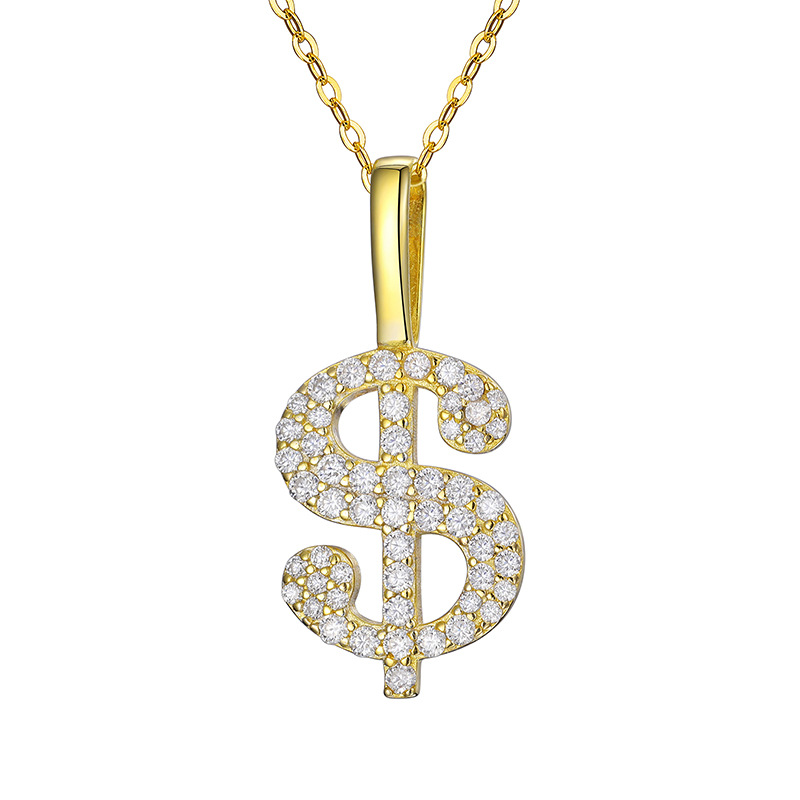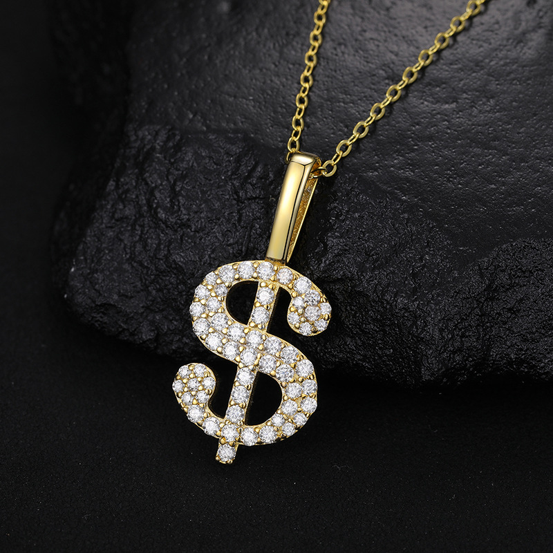 Halskette mit Dollarzeichen aus Sterlingsilber mit Moissanit – vergoldeter/weißer Hip-Hop-Anhänger (O-Ring-Kette)