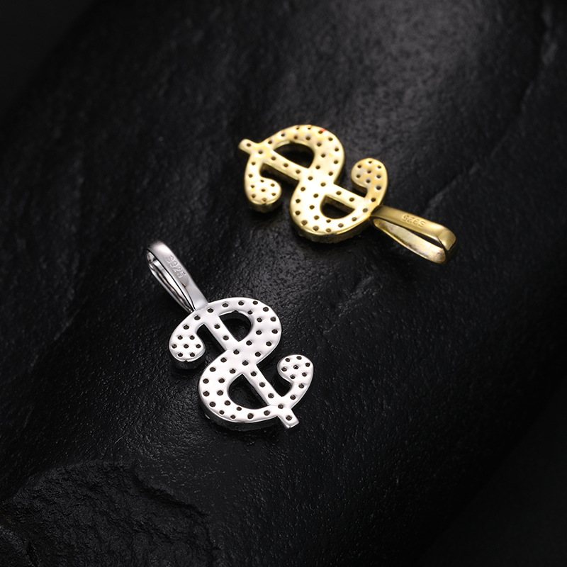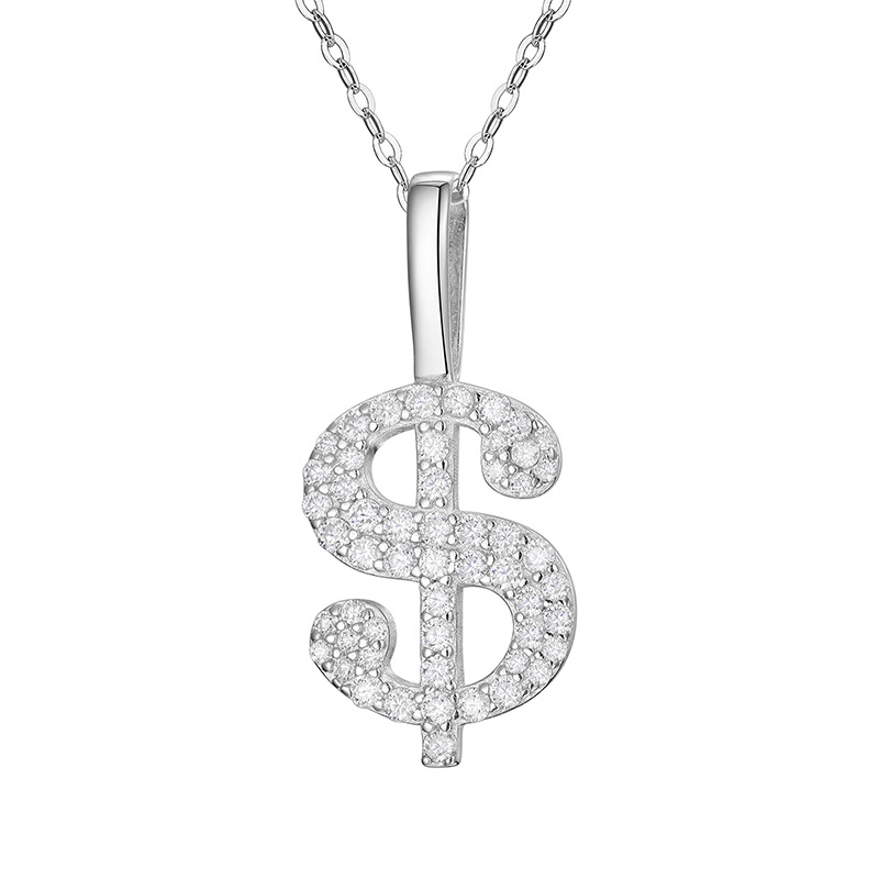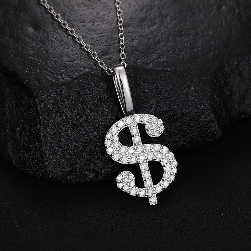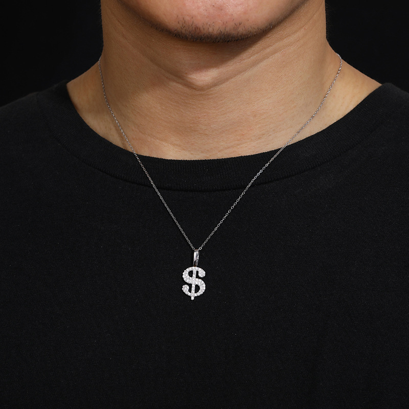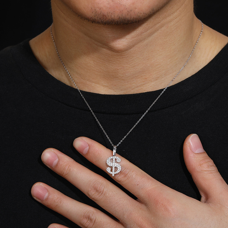 Halskette mit Dollarzeichen aus Sterlingsilber mit Moissanit – vergoldeter/weißer Hip-Hop-Anhänger (O-Ring-Kette)