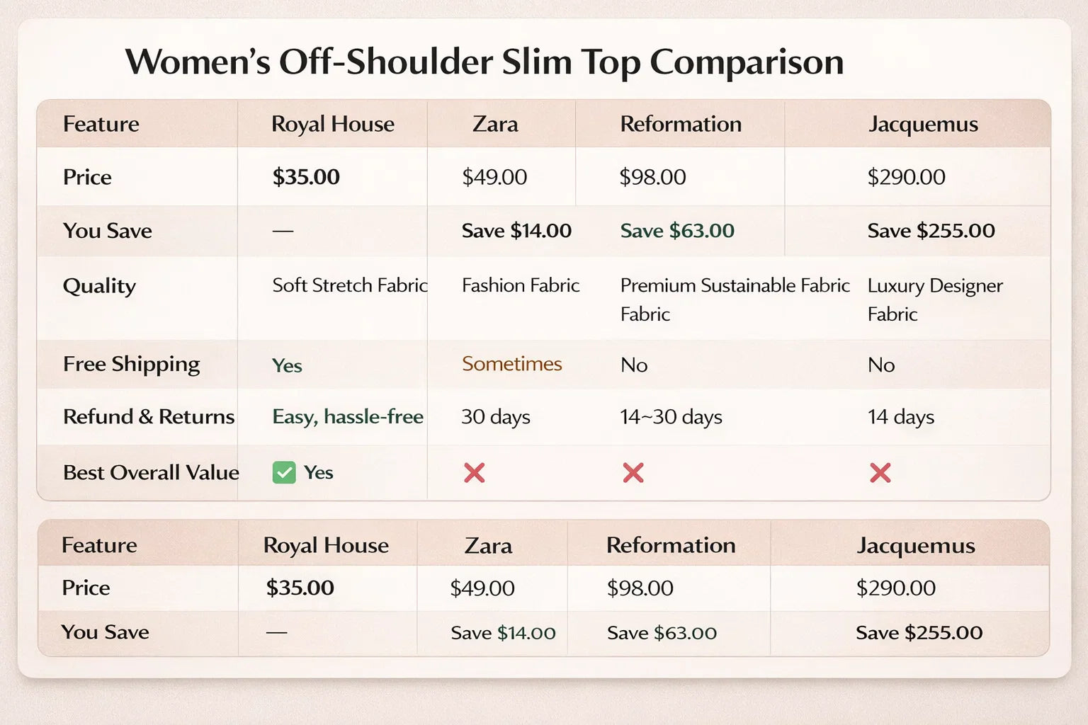 Beige-aprikosenfarbenes, schulterfreies, ärmelloses Slim-Fit-T-Shirt für Damen – Lässiges Top im Promi-Stil