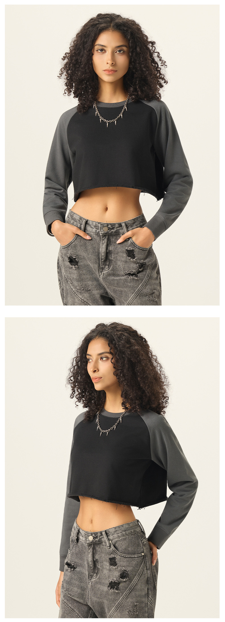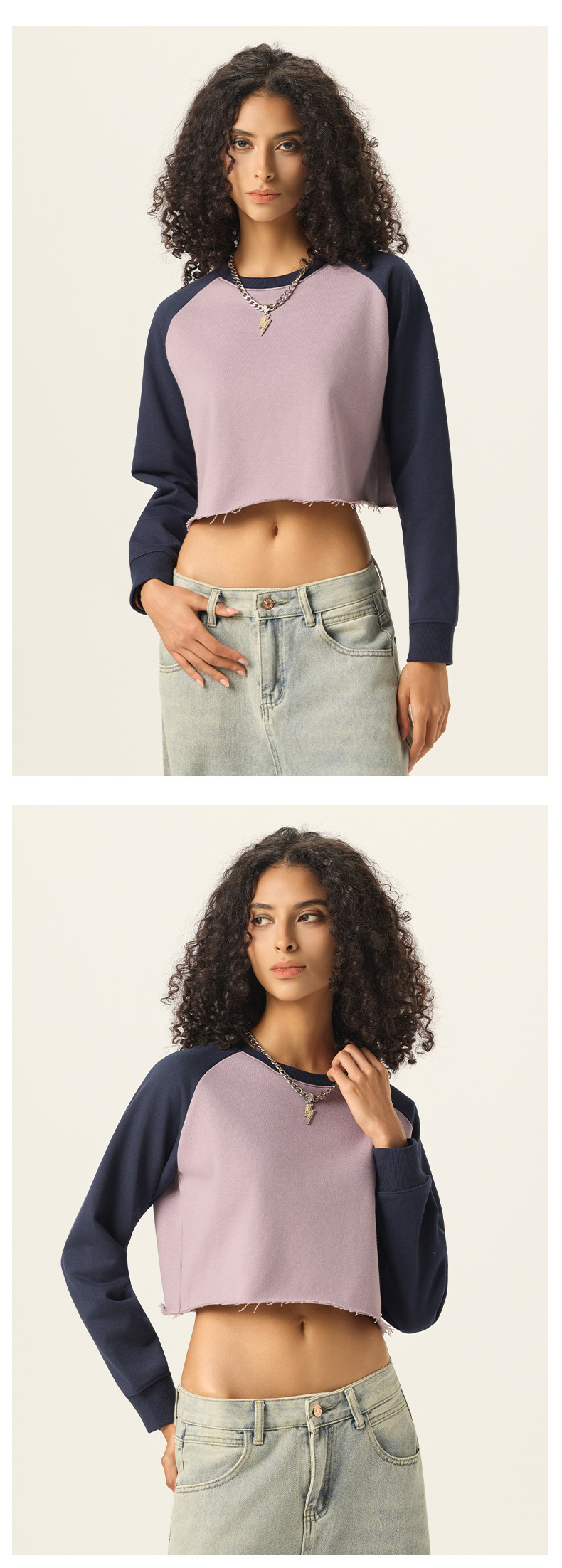 👚 Contrast Raglan SleevesTwo-tone sleeve design creates a modern sporty look