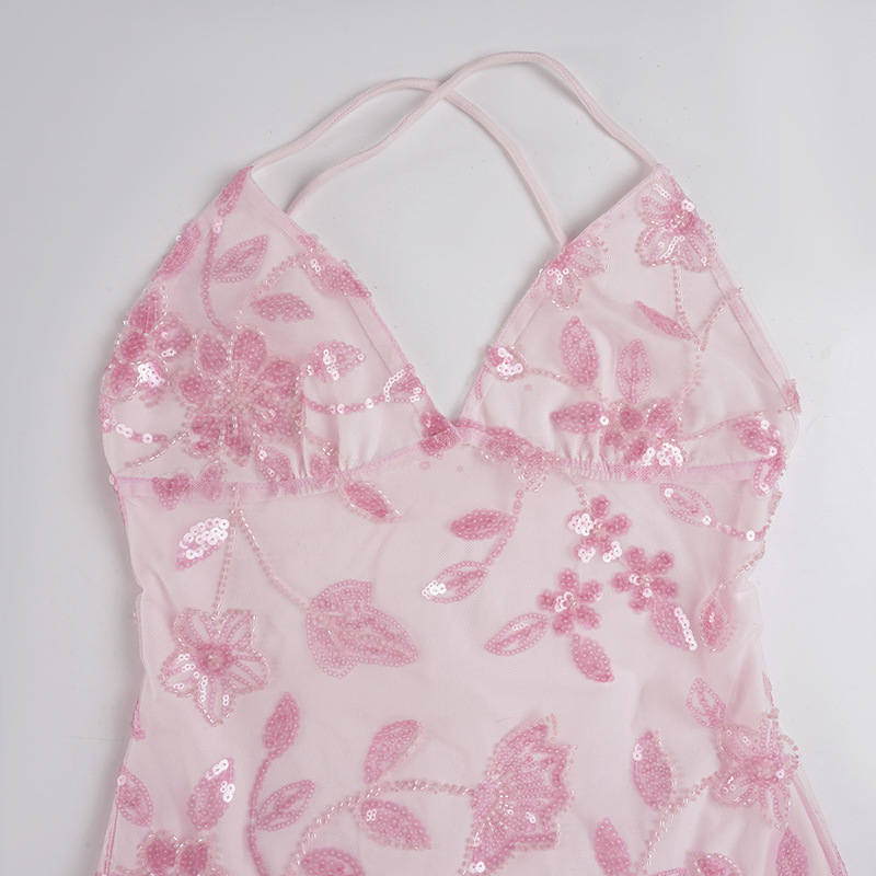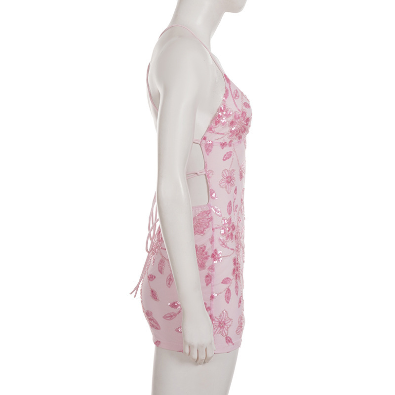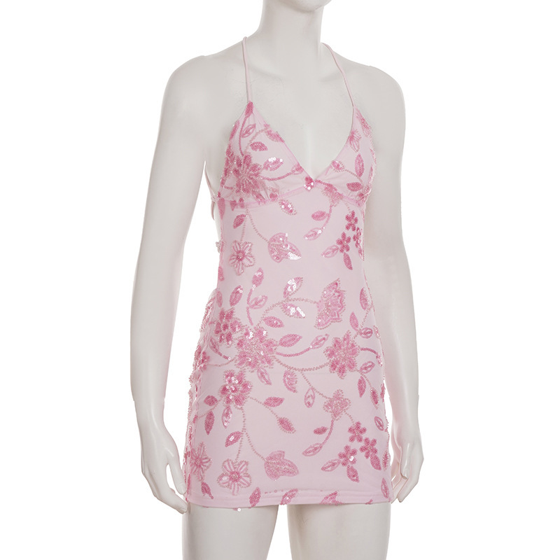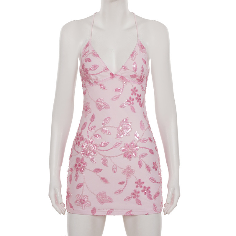 👗 1 × Women Floral Sequin Backless Mini Dress