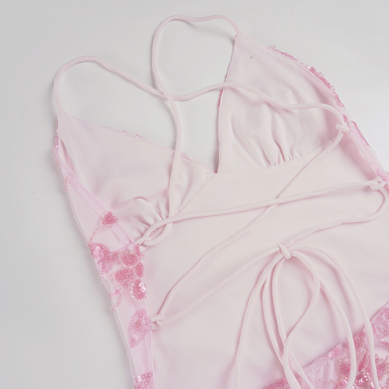 🌺 Floral Sequin Backless Mini Dress – girly, fresh, and sweet aesthetic