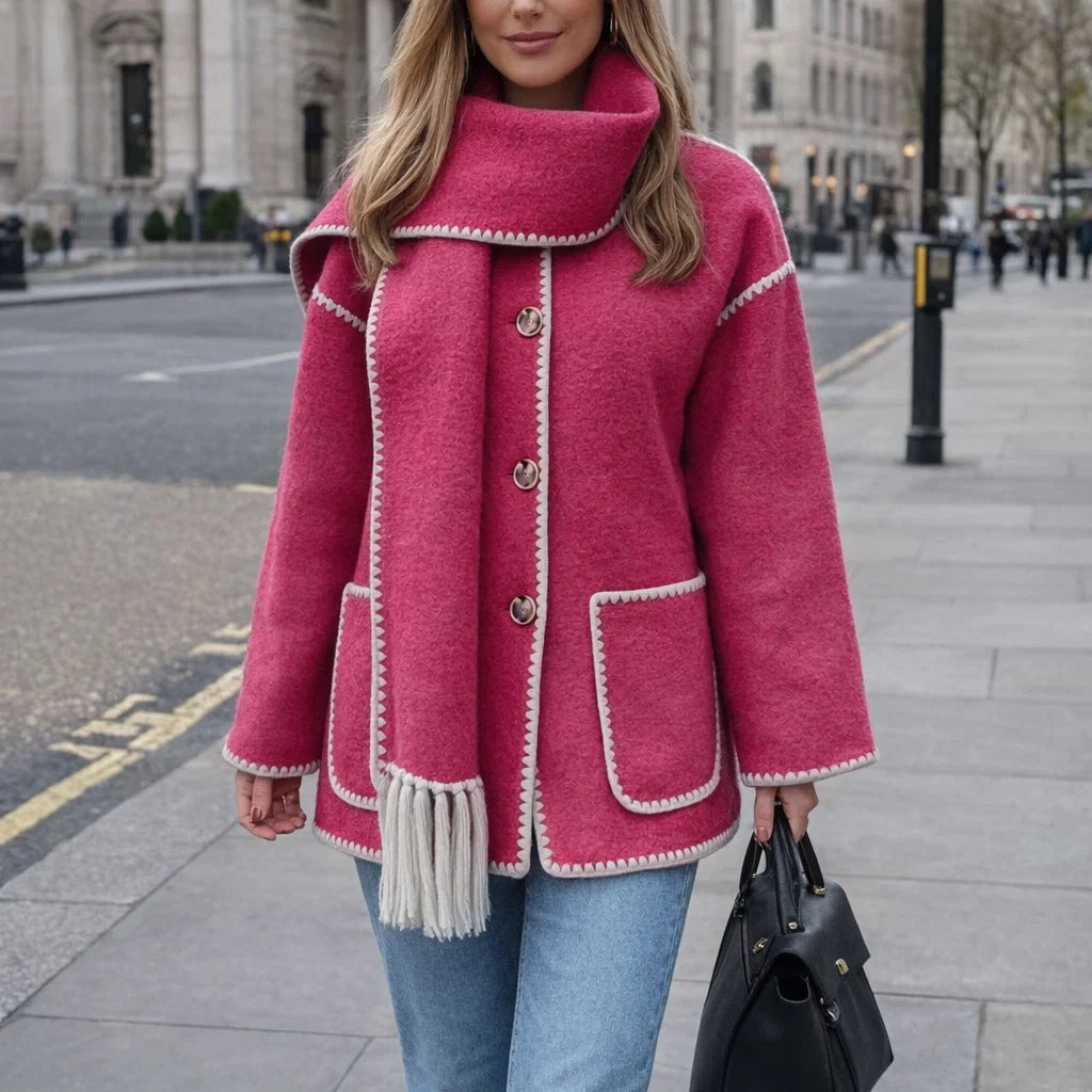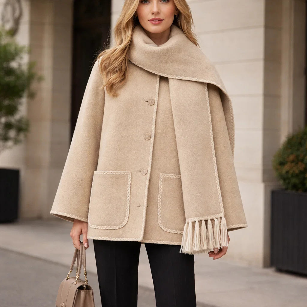 Women’s Loose Silhouette 100% Wool Coat with Matching Scarf – Cozy Lamb Wool Outerwear Set