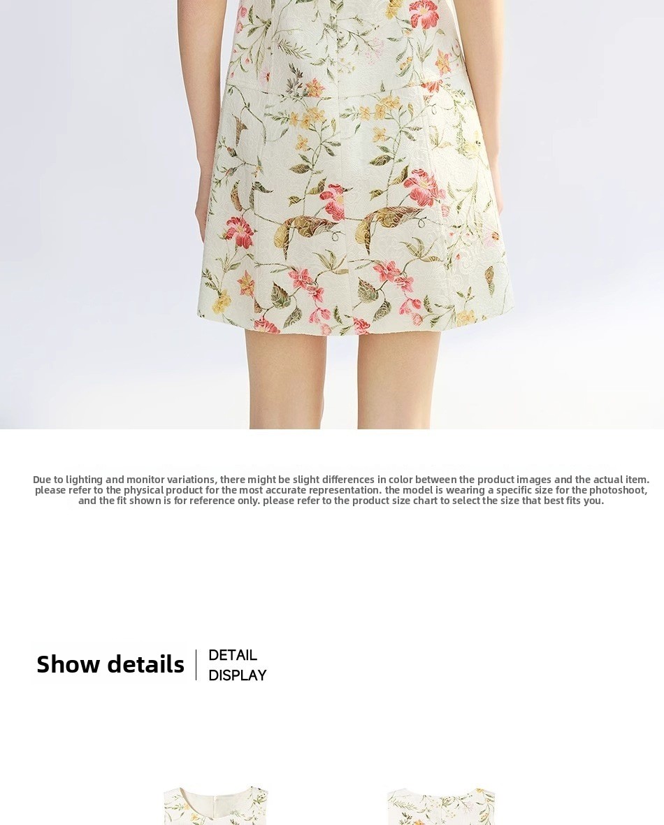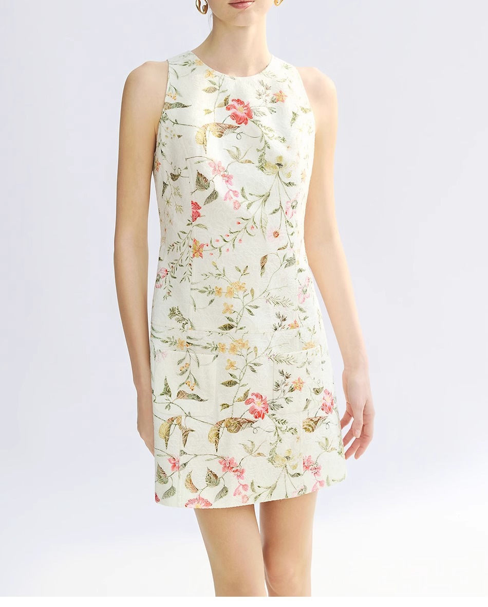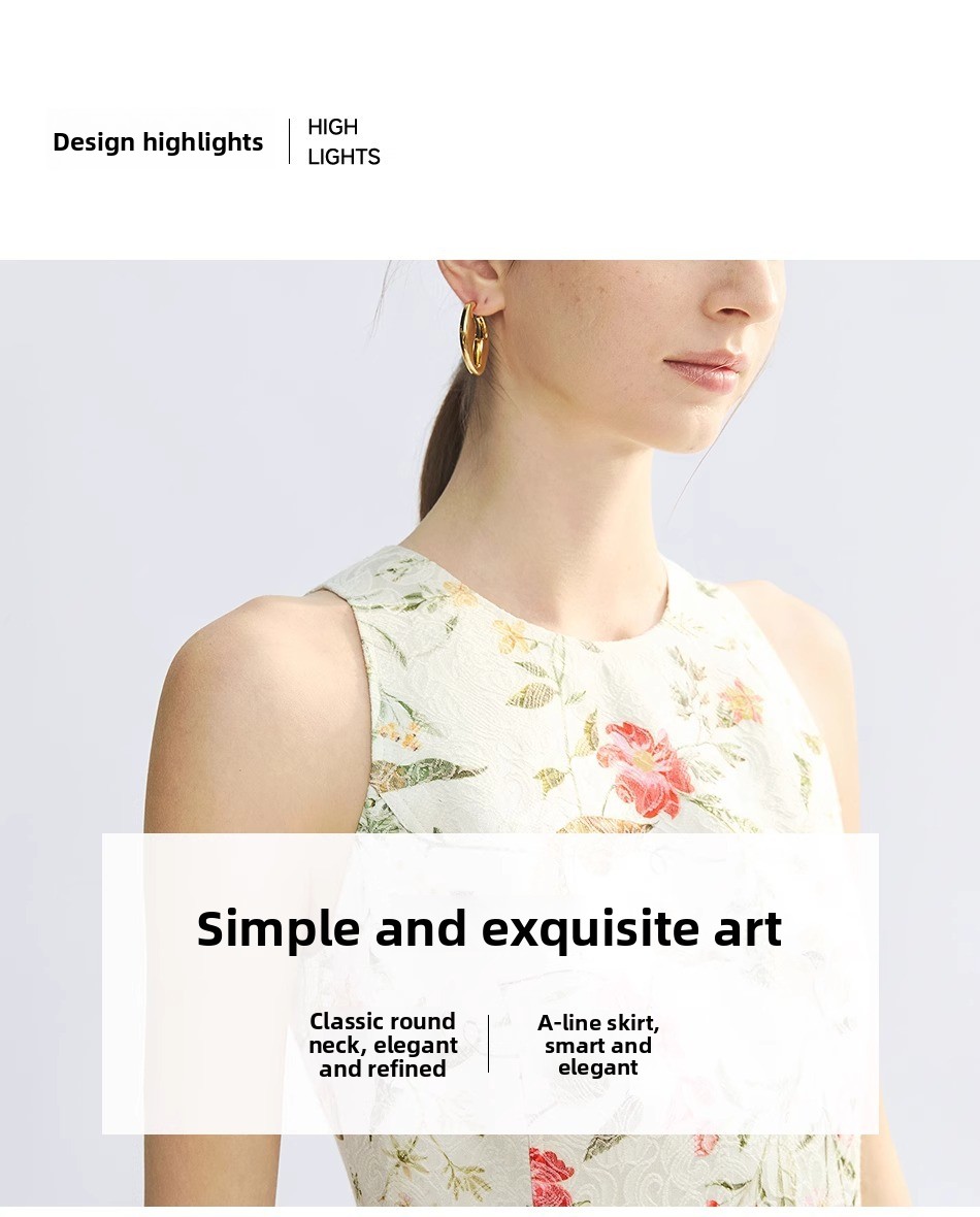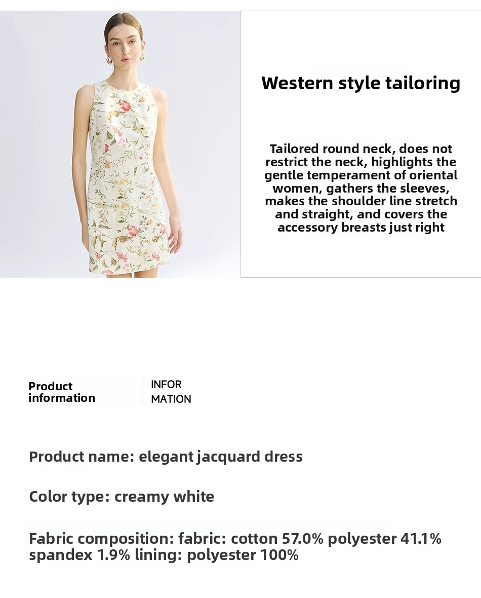 Women Business Short Cotton Dress – French Jacquard A-Line Sleeveless High Waist Commuter Dress