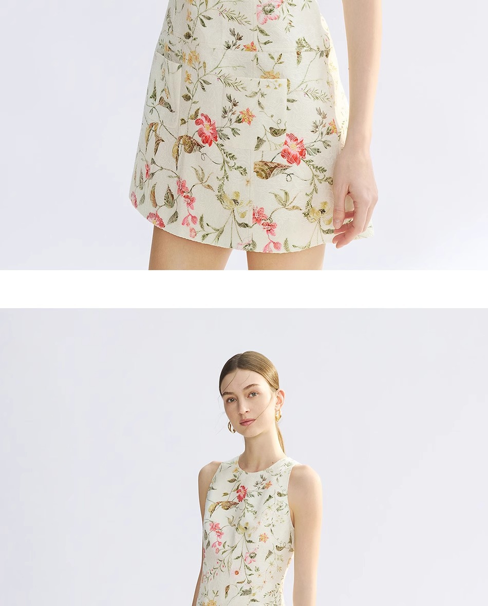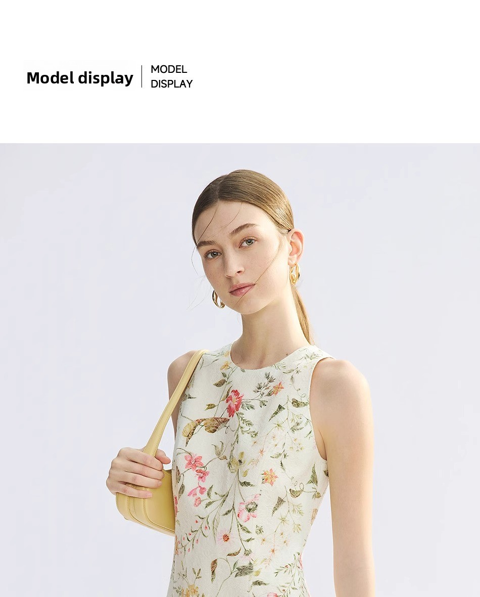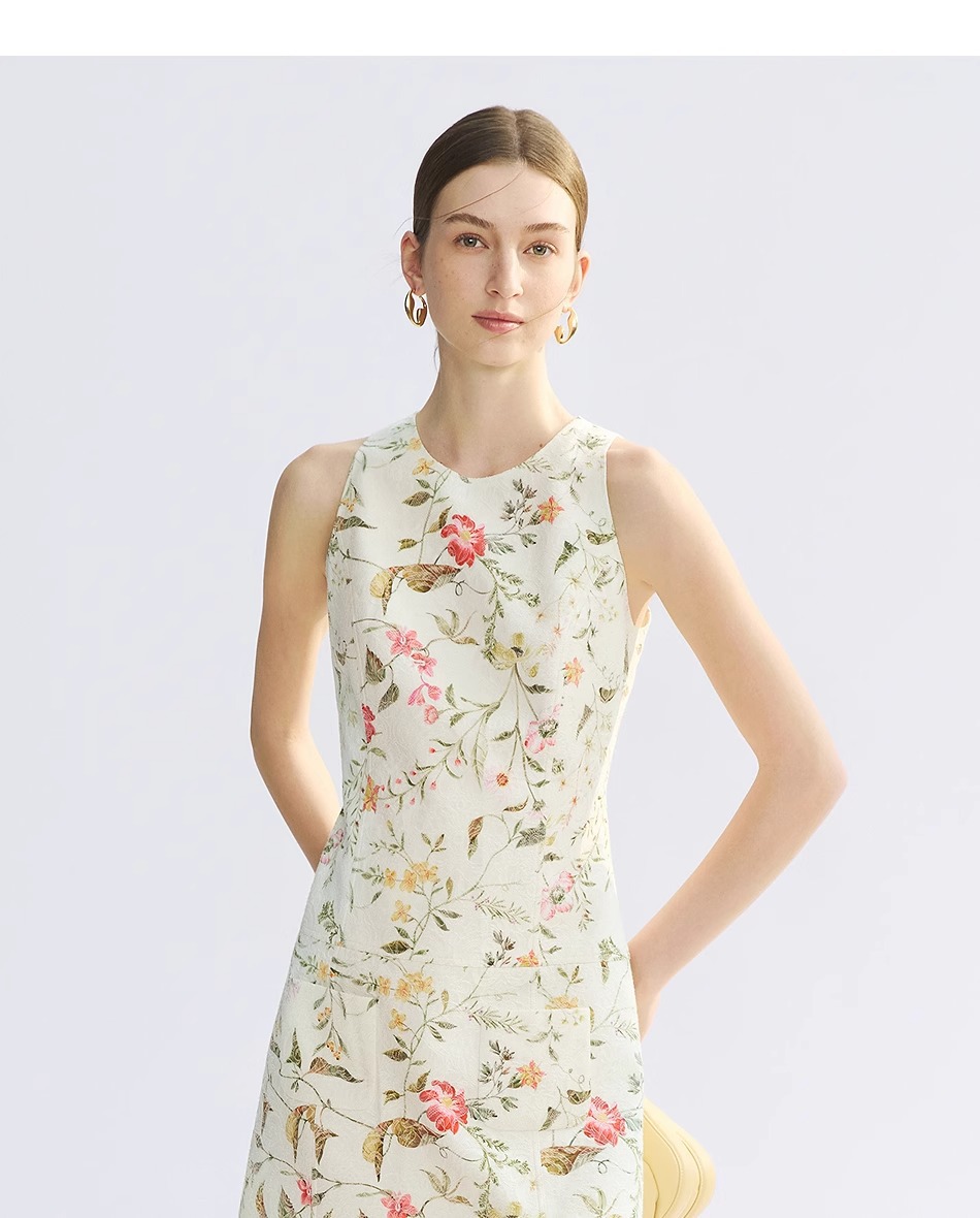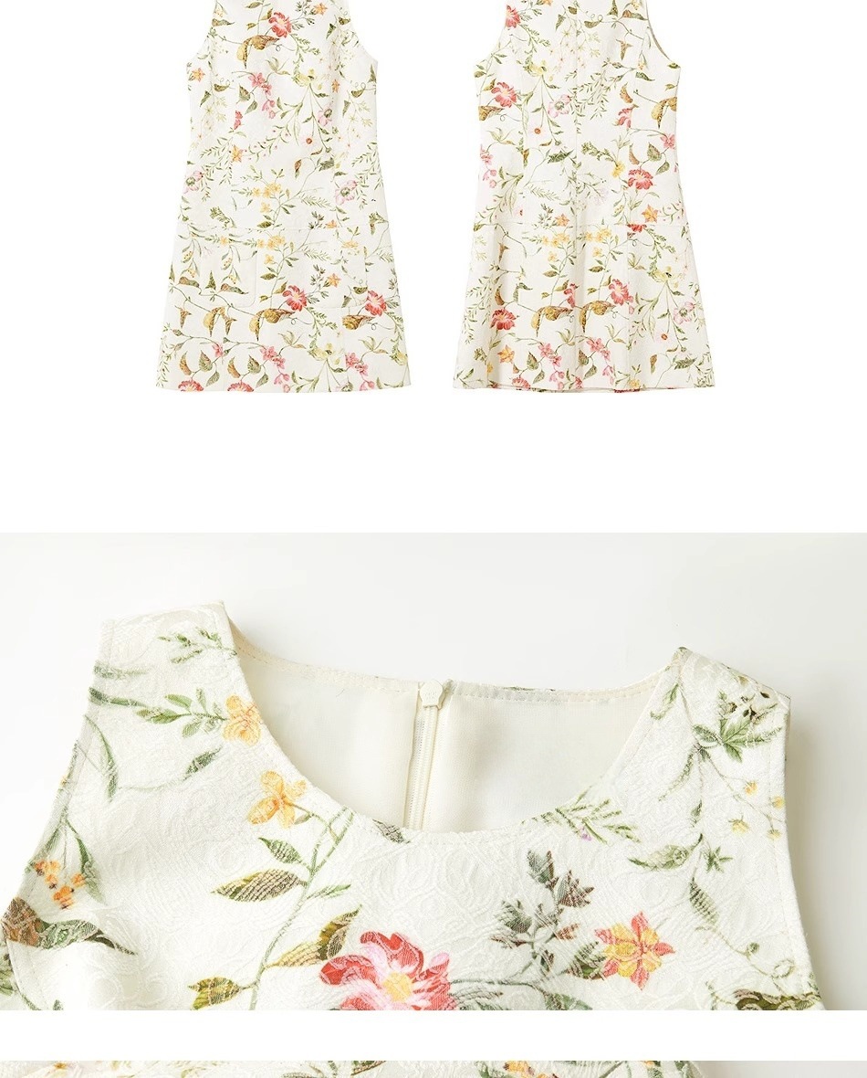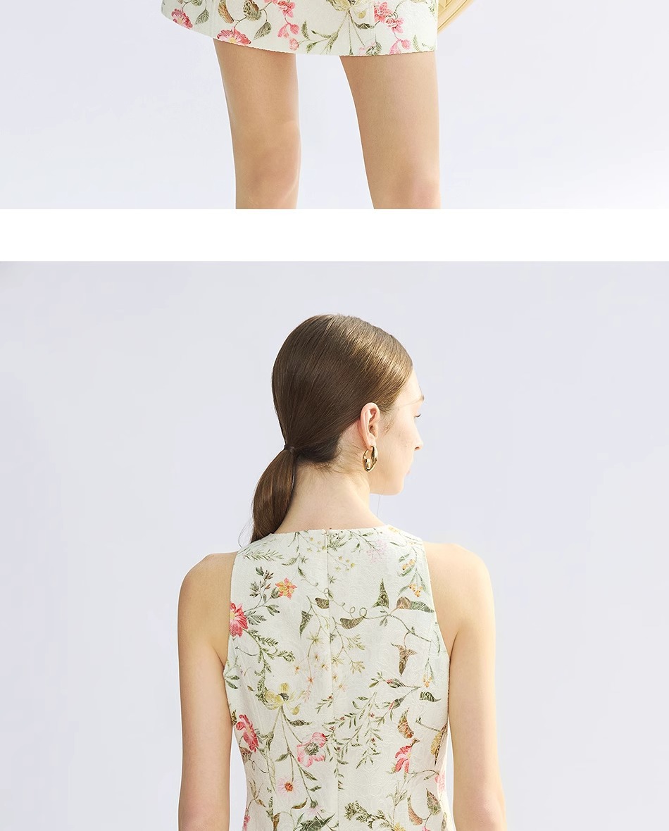 Women Business Short Cotton Dress – French Jacquard A-Line Sleeveless High Waist Commuter Dress