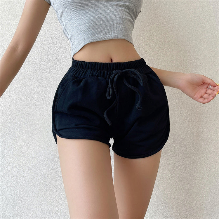 Women High-Waist Cotton Terry Shorts – Drawstring Casual Loose Fit Lounge Shorts with Pockets