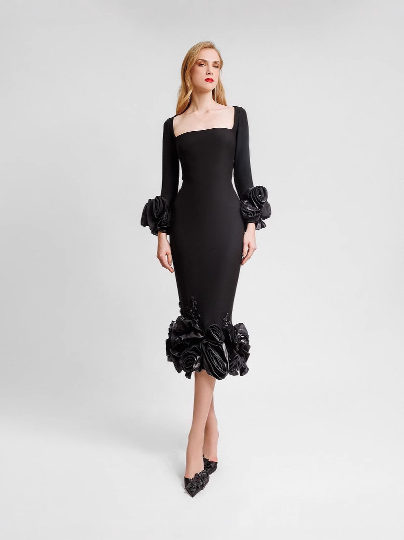 👗 1 × Women Strapless 3D Floral Evening Dress