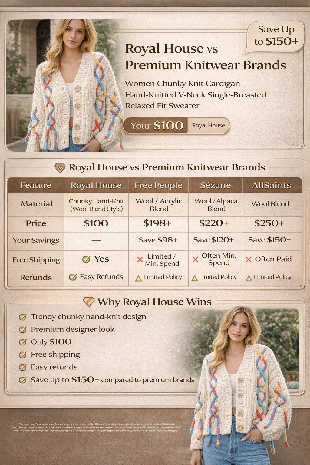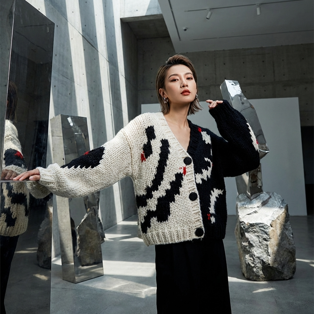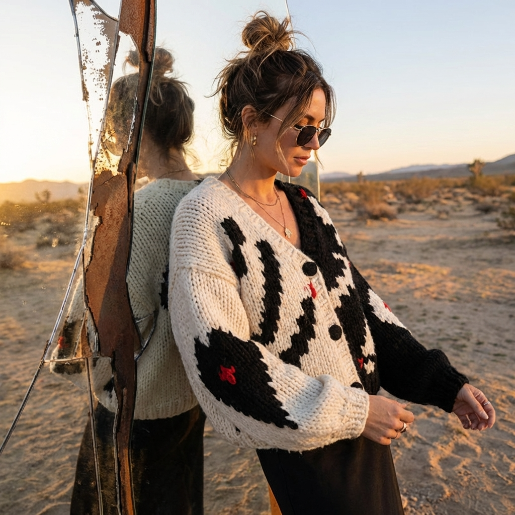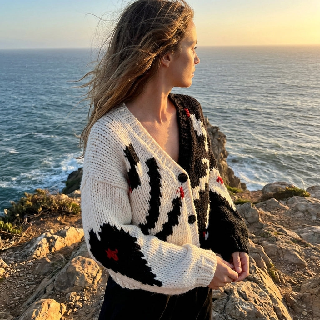 Women Chunky Knit Cardigan – Hand-Knitted V-Neck Single-Breasted Relaxed Fit Sweater