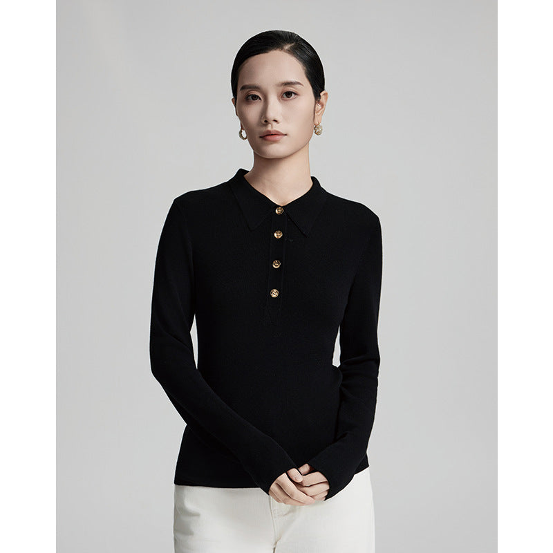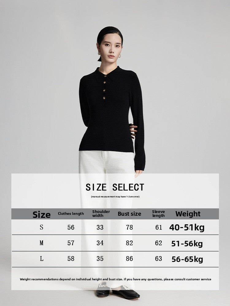 Women’s 95% Wool Sweater – Slim Fit Half-Zip Polo Neck Pullover with Soft Lightweight Knit, Long Sleeves & Elegant Solid Color Design
