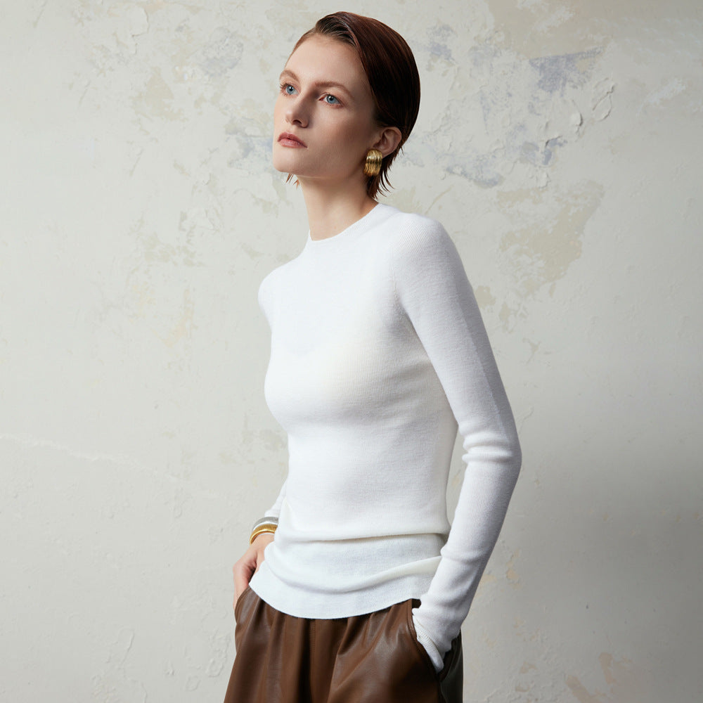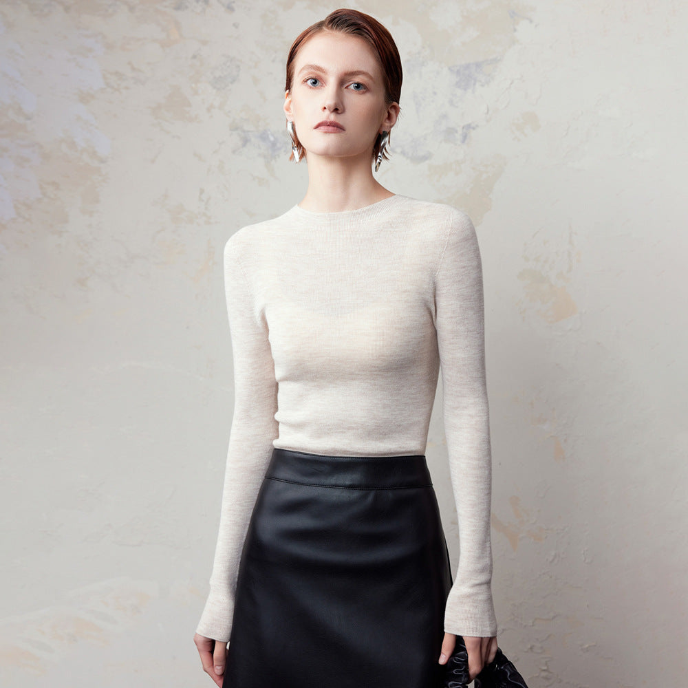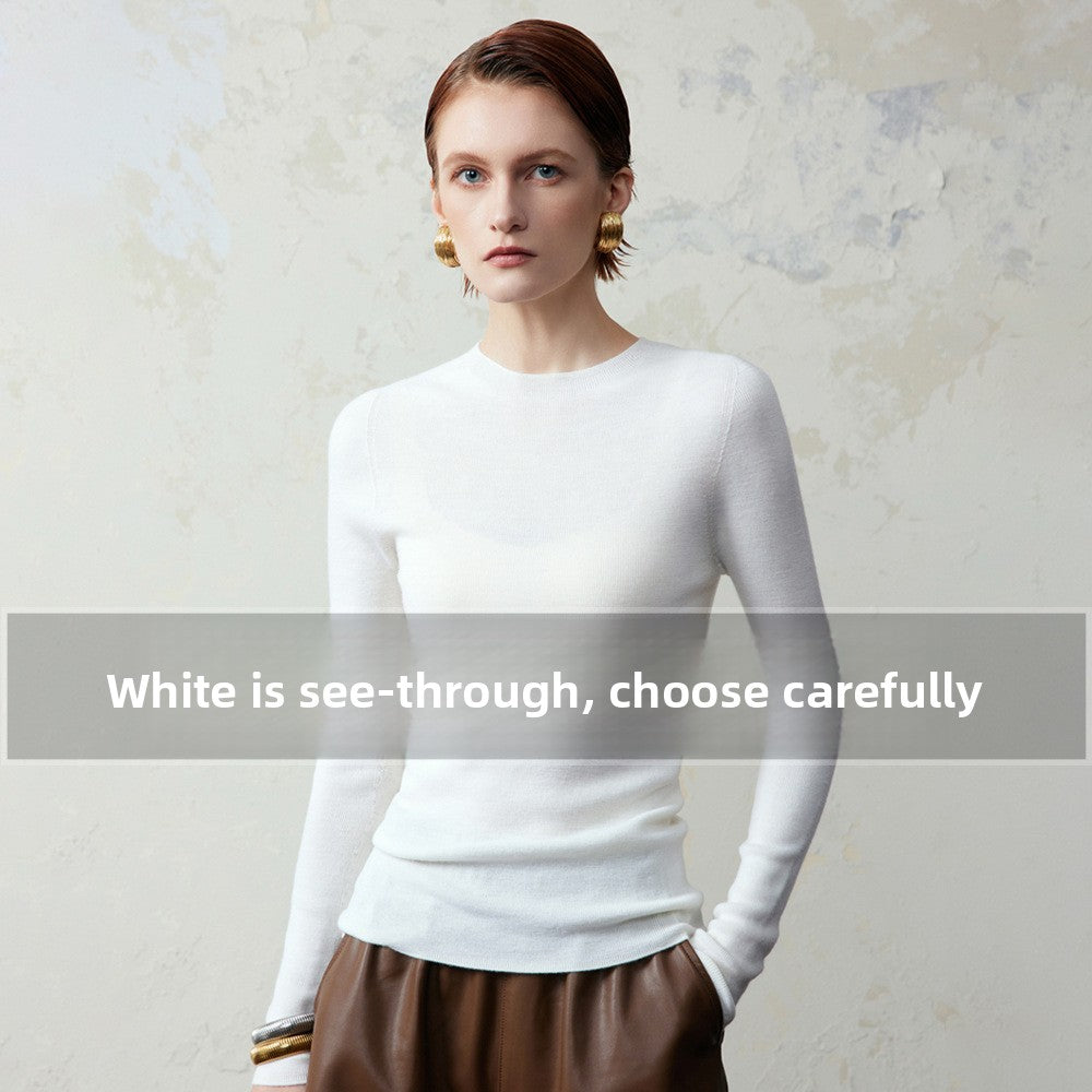 Women 95% Fine-Spun Wool Slim Fit Sweater – Lightweight Round Neck Long Sleeve Pullover Knit Top