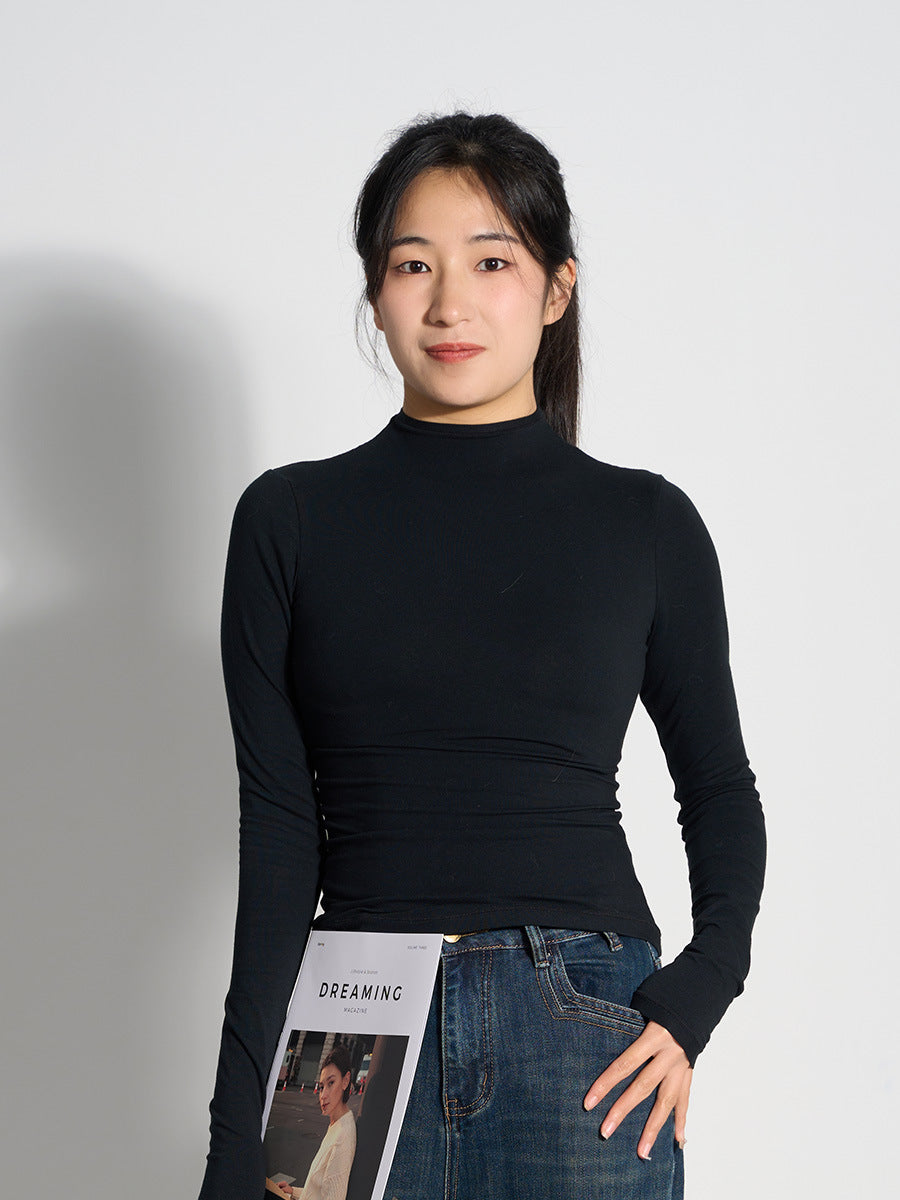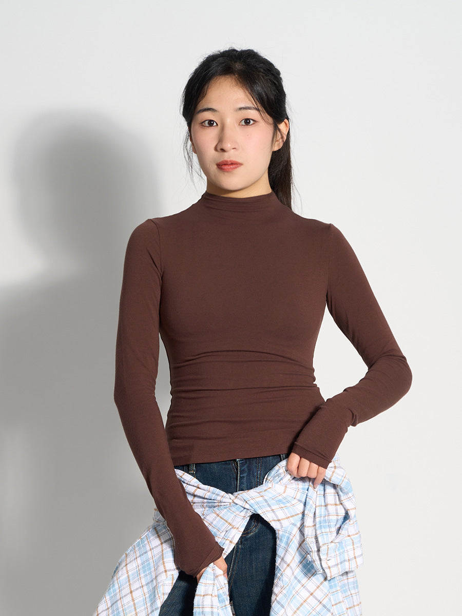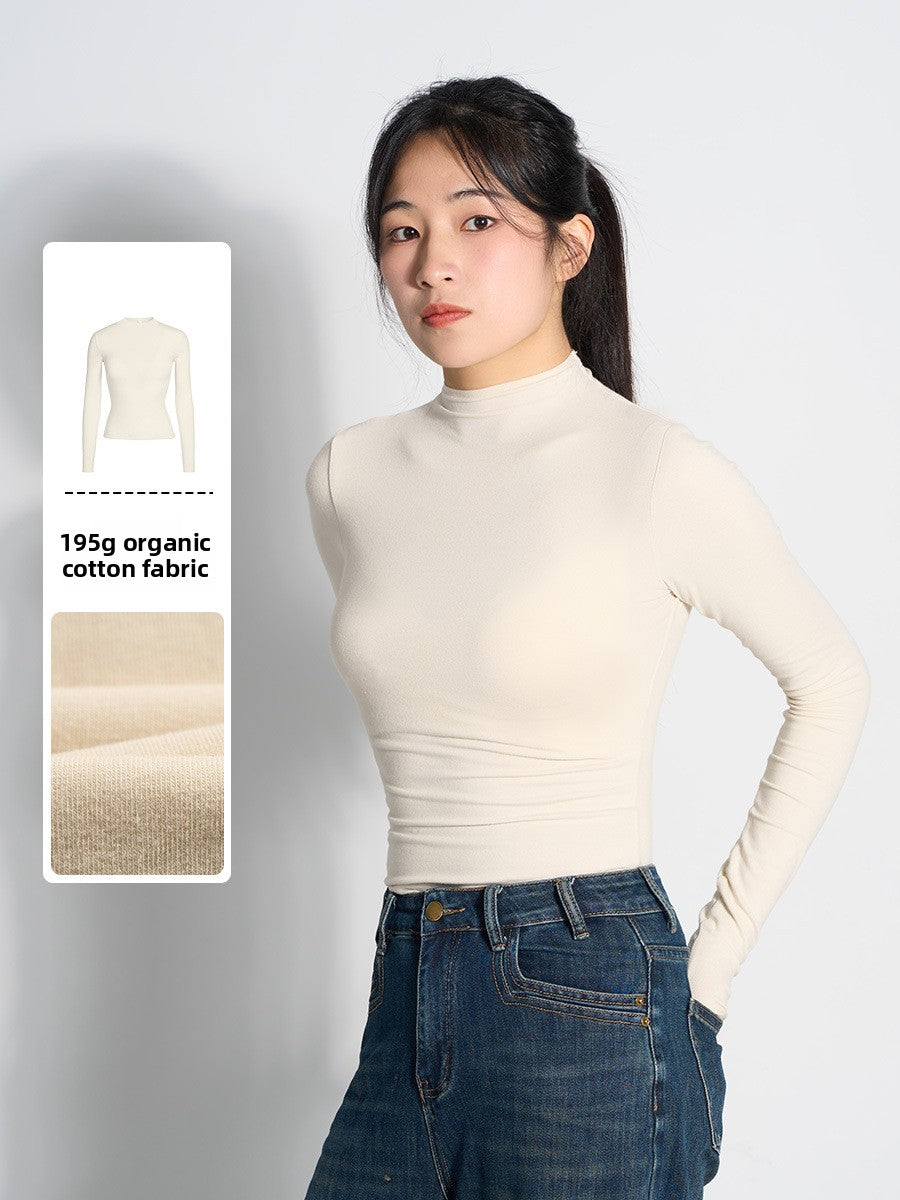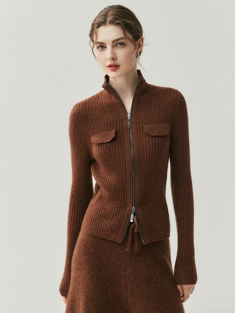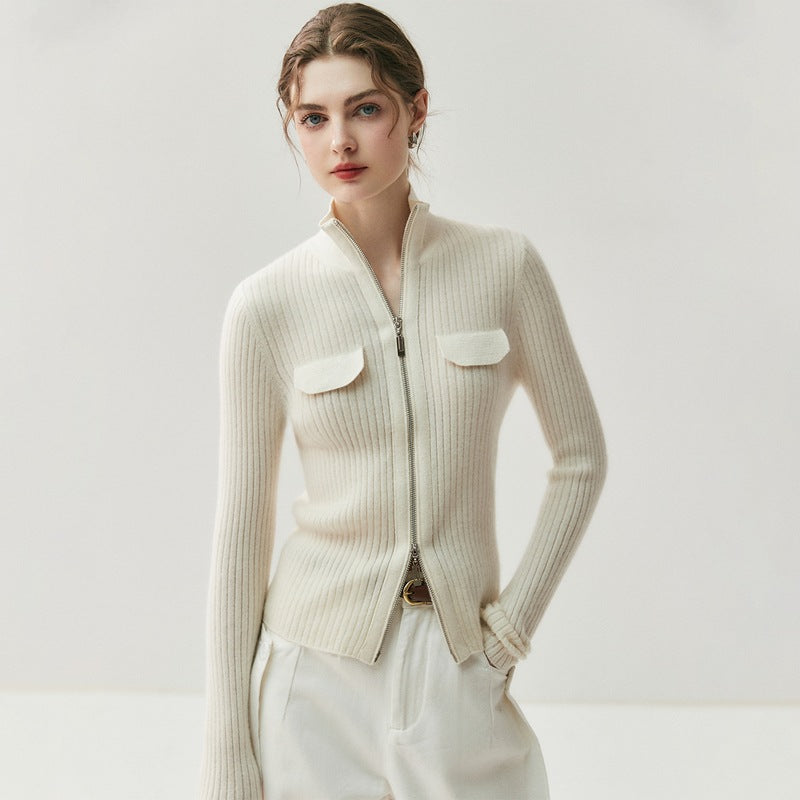 Women 100% Cashmere Knitted Cardigan – Korean Style Slim Fit Half Turtleneck Zip-Up Sweater