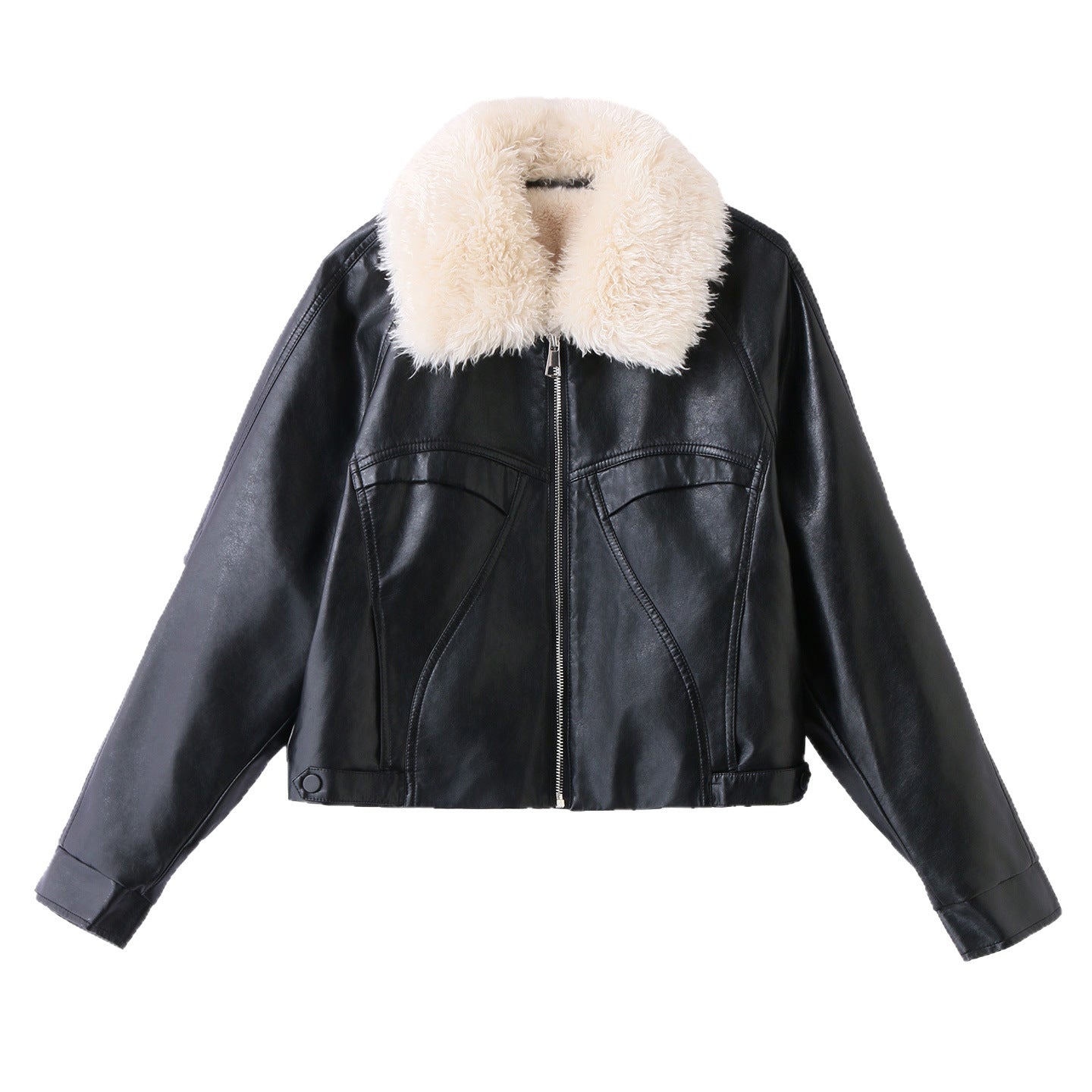 Men’s Leather Fur Lapel Jacket – Thickened Winter Warm Zipper Coat with Side Pockets Loose Fit