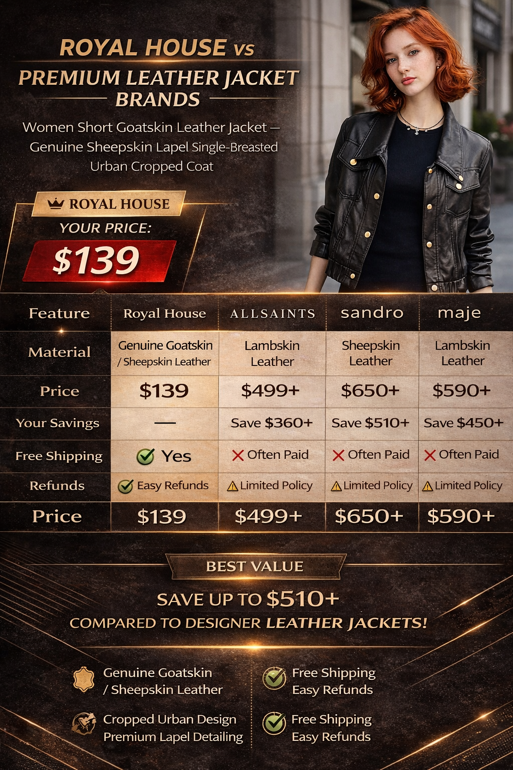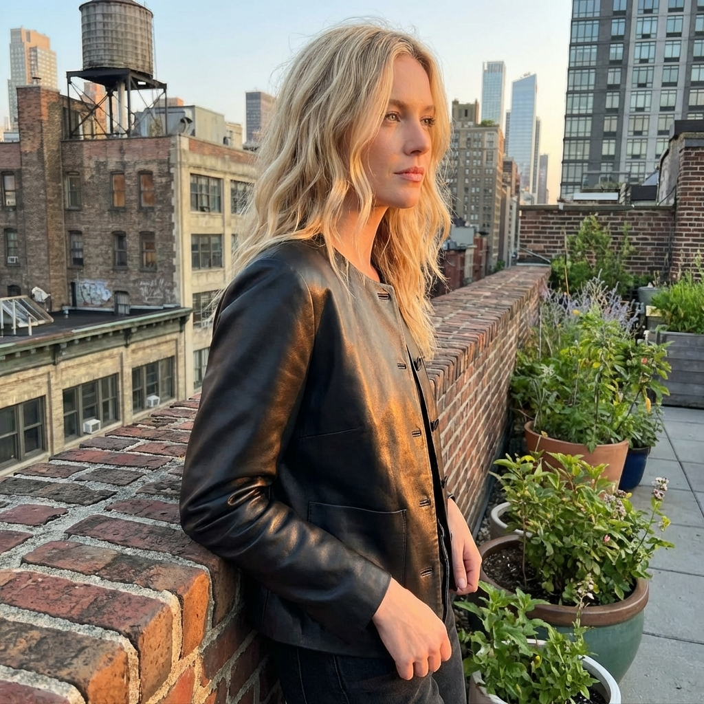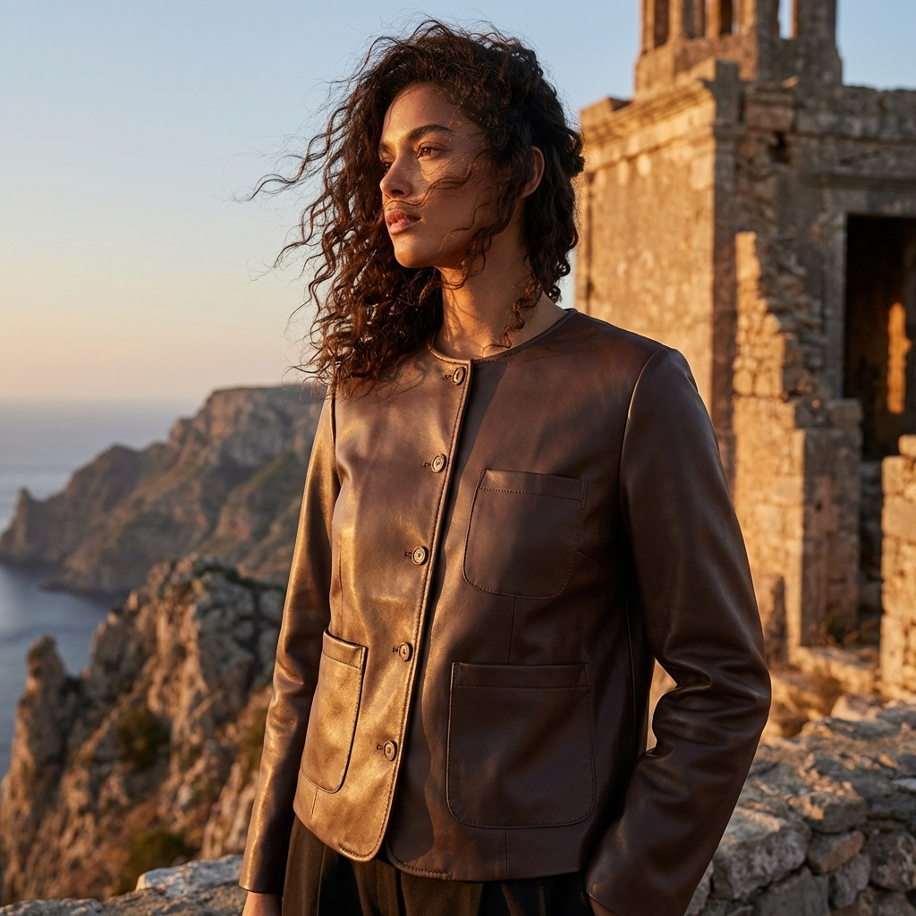 Women Short Goatskin Leather Jacket – Genuine Sheepskin Lapel Single-Breasted Urban Cropped Coat