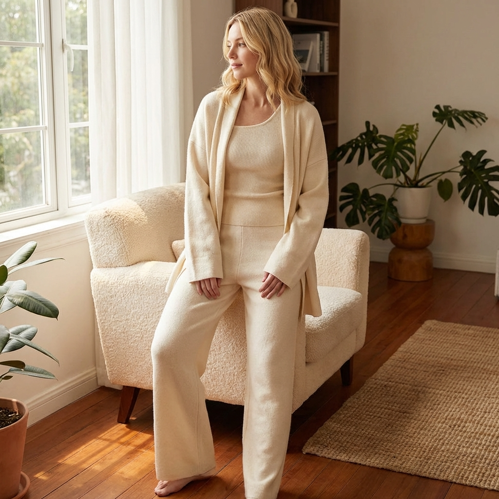 Women’s Knit Cardigan 3-Piece Set – Soft Sweater Outfit with Cardigan, Top & Wide-Leg Pants for Office, Lounge & Casual Wear