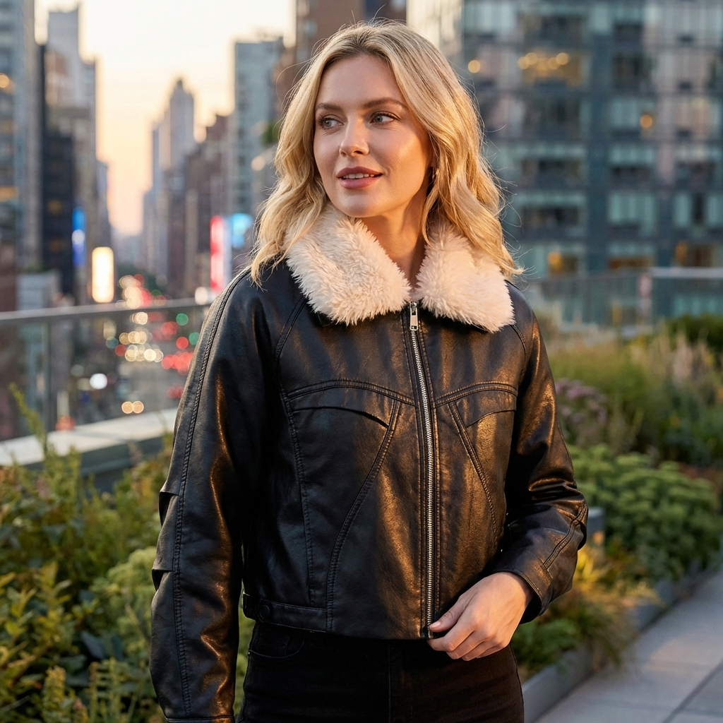 Women’s Tuscan Faux Shearling Jacket – Faux Fur Lapel Commuter Style