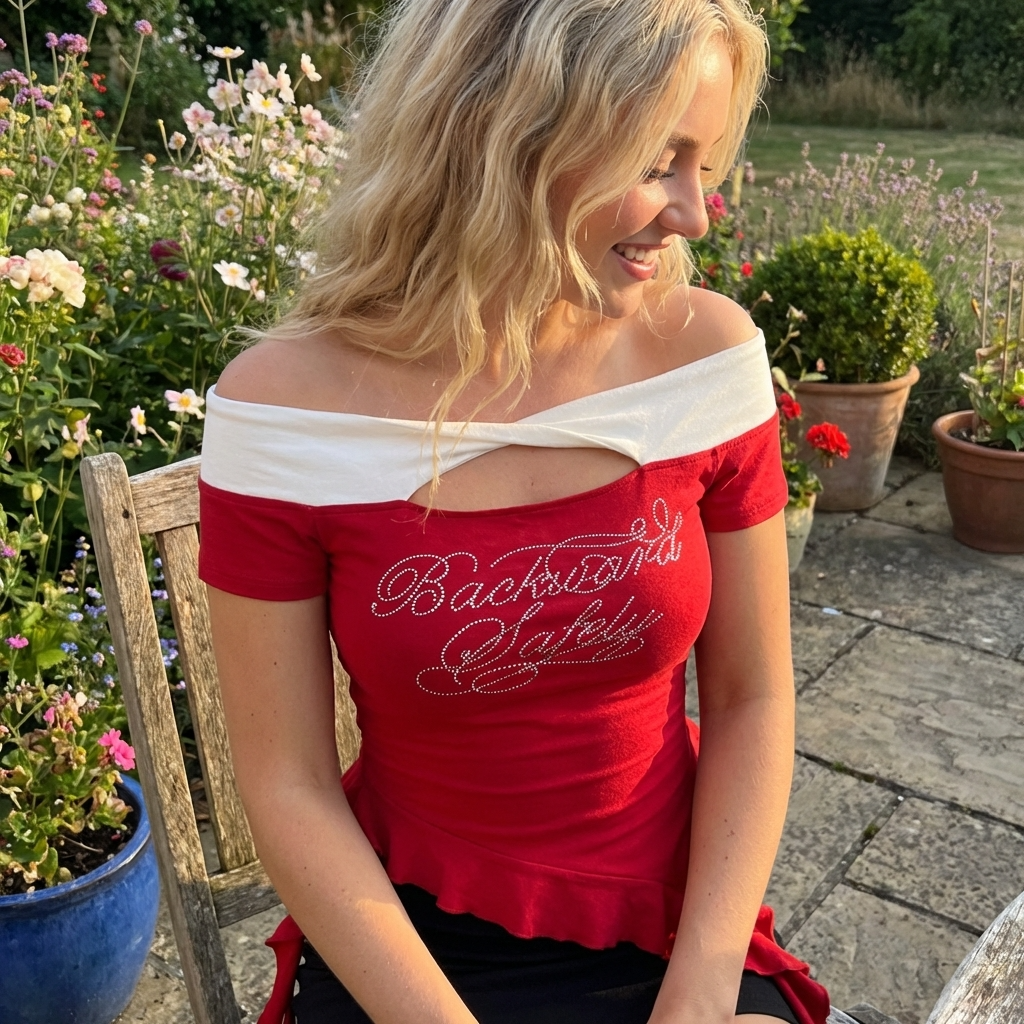 Women Retro Off-Shoulder Ribbon Slim Fit T-Shirt – One-Line Collar Embroidered Short Sleeve Summer Crop Top