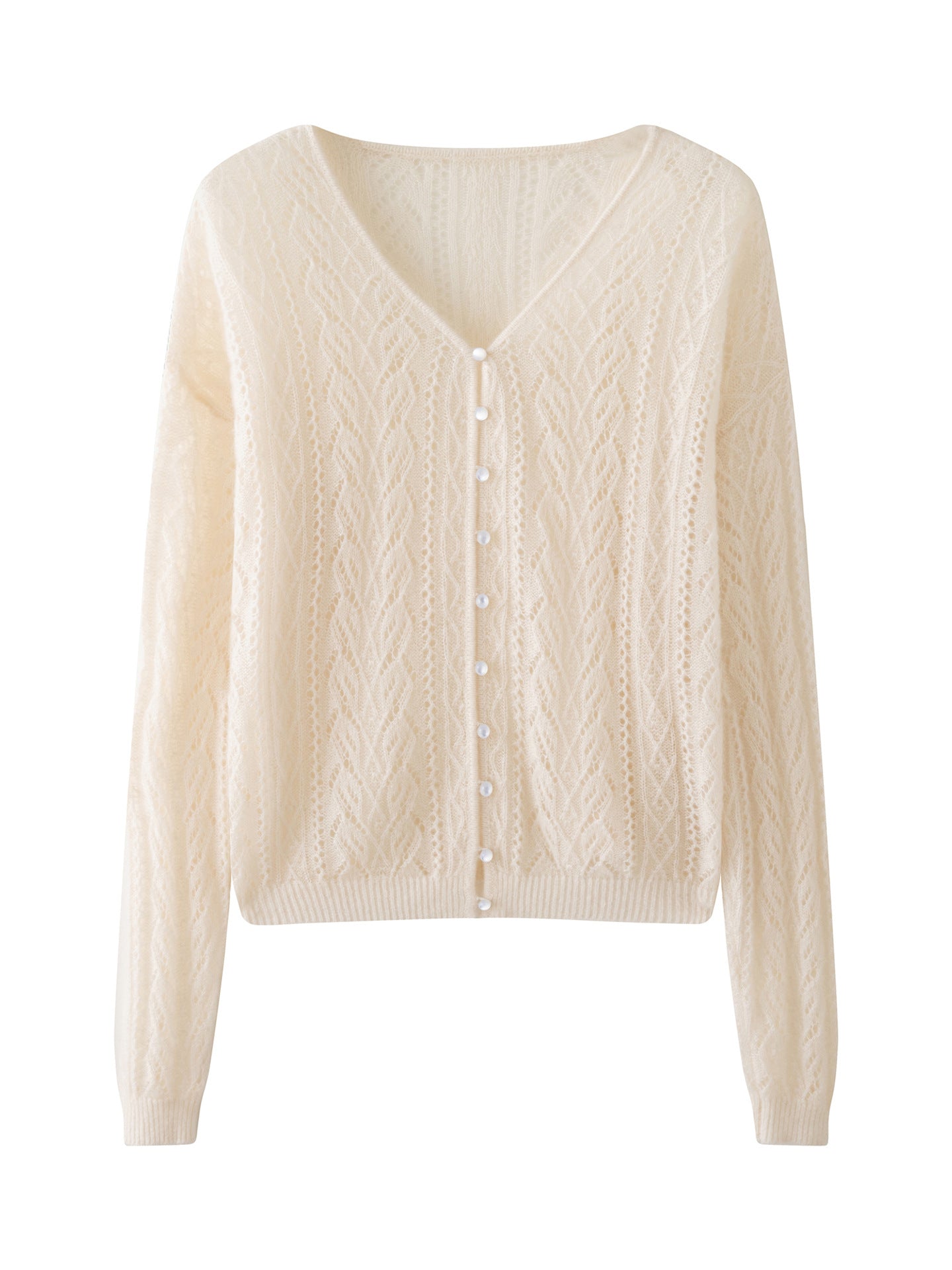 Women 75% Cashmere 25% Mulberry Silk Knitted Cardigan – Lightweight V-Neck Loose Fit Cut-Out Button Sweater