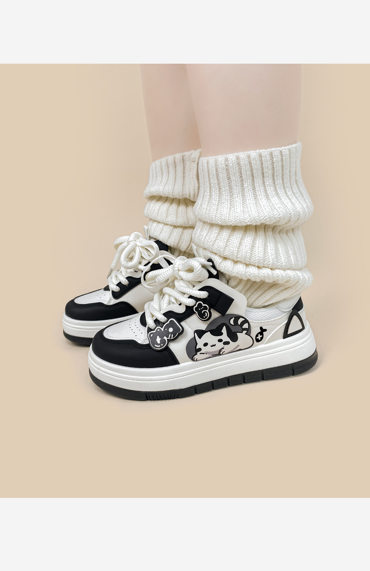 🐱 Plateau-Sneaker „Lying Meow Meow“ für Damen – süßes Cartoon-Design (Schnürschuh, Low Top)