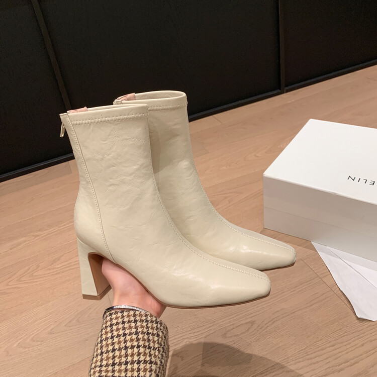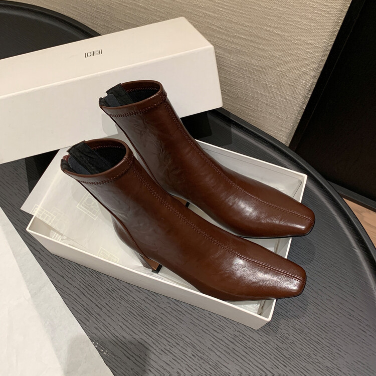 👢 Rindslederstiefel im französischen Stil für Damen – Stiefeletten mit eckiger Zehenpartie und hohem Absatz