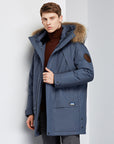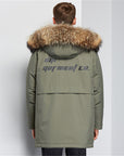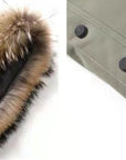 • Abnehmbare Kapuze mit Pelzbesatz