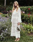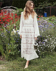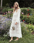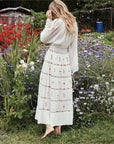 Damen-Maxirock im Boho-Stil mit Stickerei – europäischer und amerikanischer Street-Hipster-Stil (weiß) – langer Baumwollrock mit elastischer Taille (S-XL