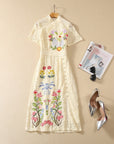 Women’s Fashion Embroidery Lace Dress – Elegant Floral Pencil Skirt Style