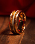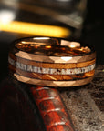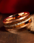 Herrenring Elektro Gold Wolfram Ring Intarsien Weinfass Holz Geweih