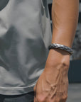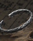 Herren Vintage Thai Silber Twist Armband – Handgewebter Tribal Schmuck – 51mm verstellbarer Armreif