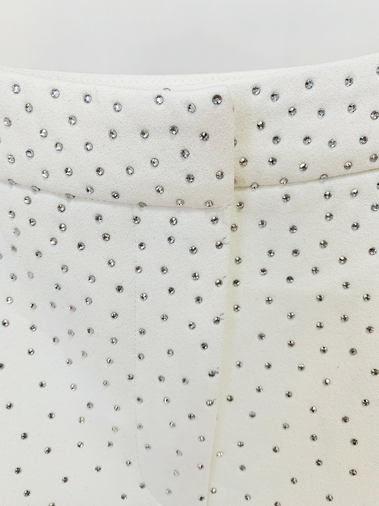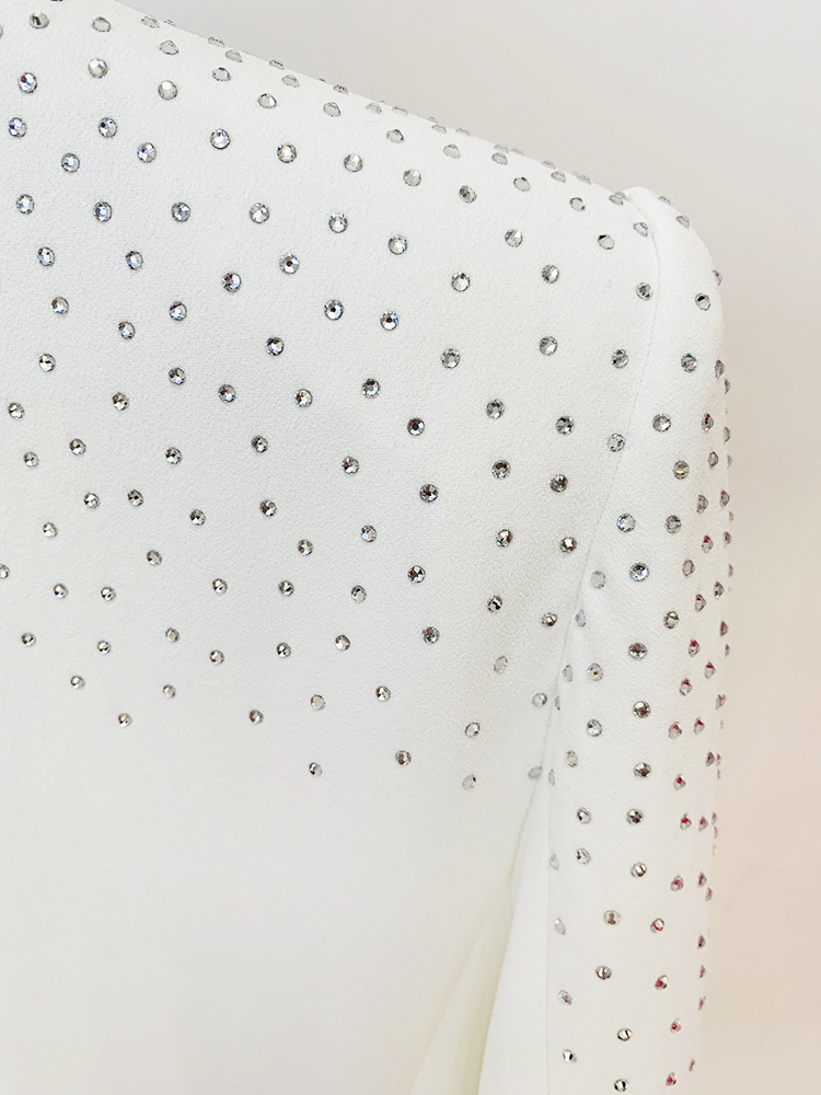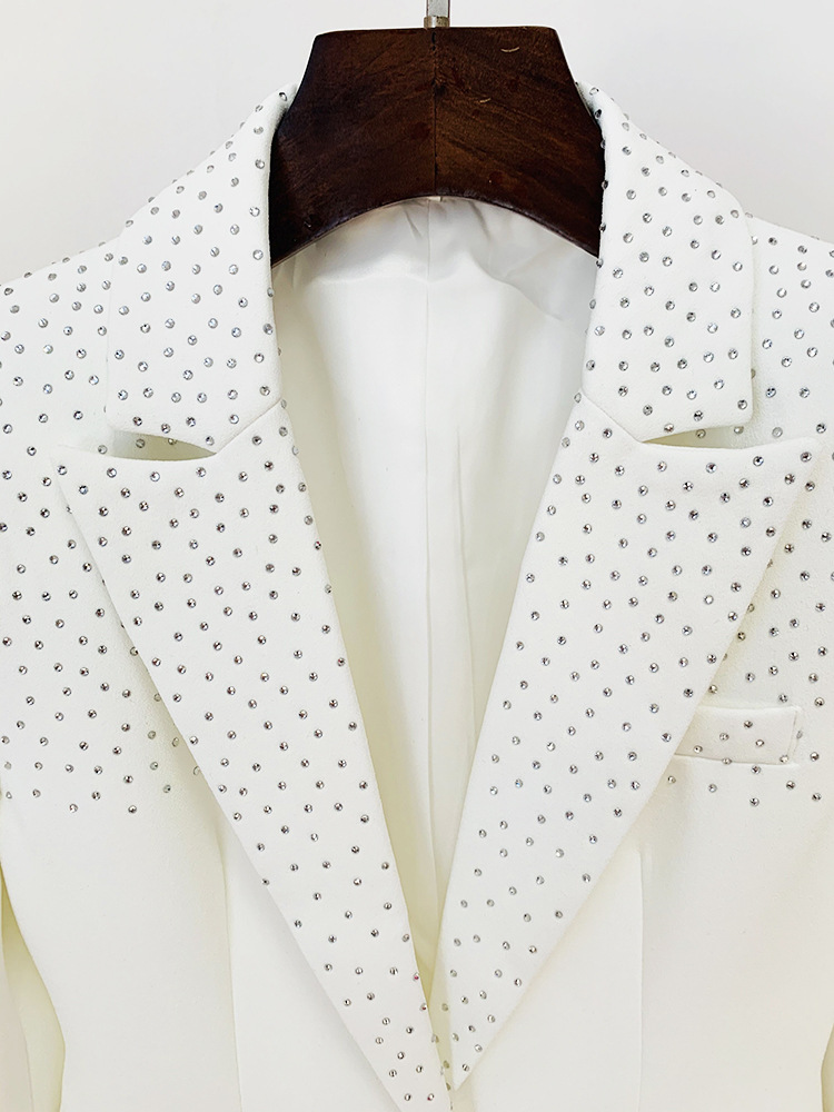 Damen-Kostümset mit Strasssteinen, schmal geschnitten, einreihig, mit einem Knopf.