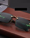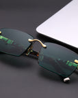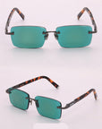 Dark Green Frameless Trimmed Sunglasses – Premium Crystal Lens (Gold/Grey/Mahogany Frames)