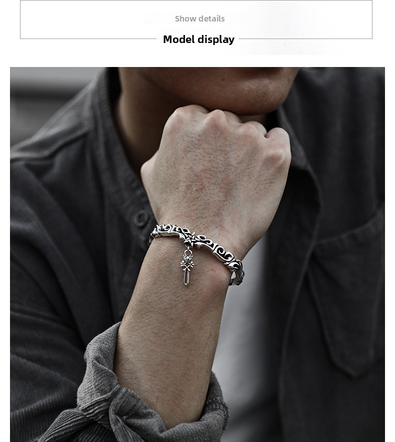 🖤 1 × Men Thai Silver Plated Cross & Star Bracelet