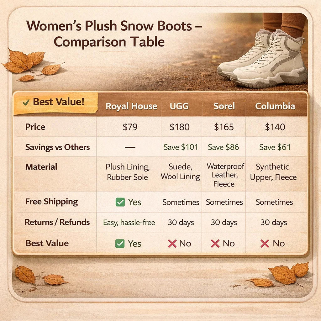 Women's Plush Snow Boots - Fashion Big Cotton Winter Boots with Rubber Sole