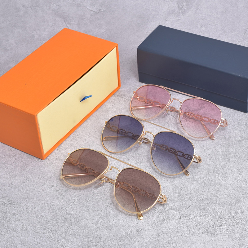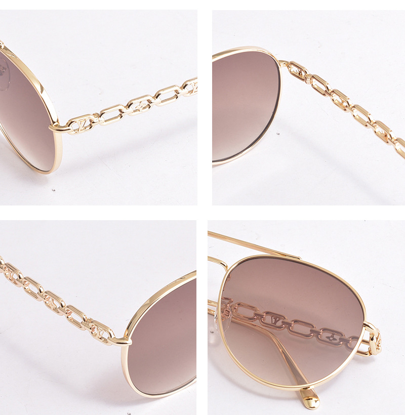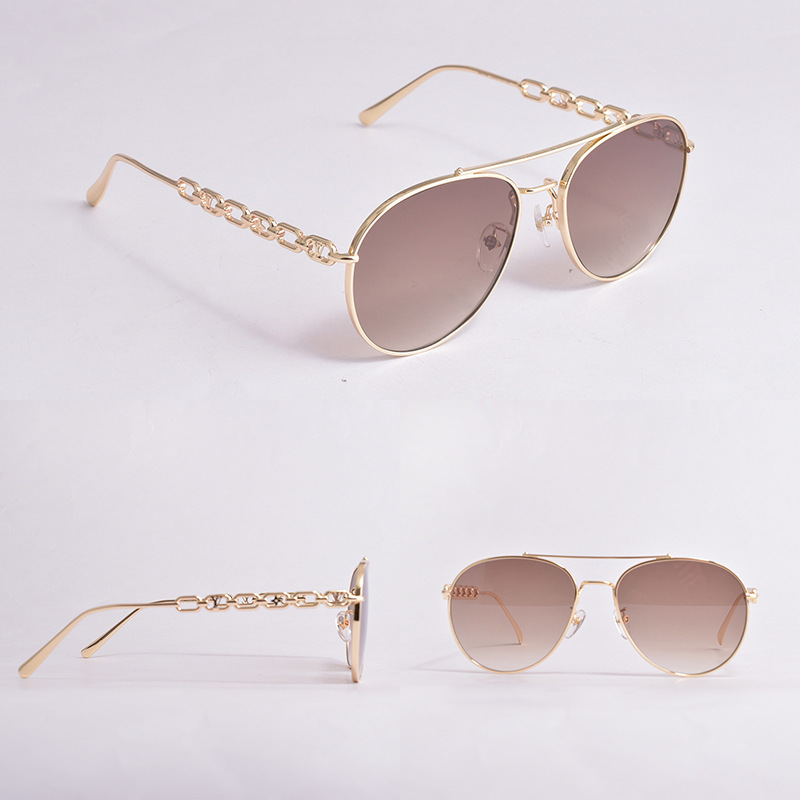 Women’s Polarized Pilot Sunglasses with Chain – UV400 Metal Frame Aviator Shades with CR39 Lenses for Driving