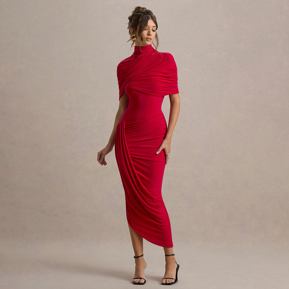 Women’s Elegant Slim-Fit Pleated Maxi Dress – High-Waist Milk Silk Fashion Lady Pullover Gown