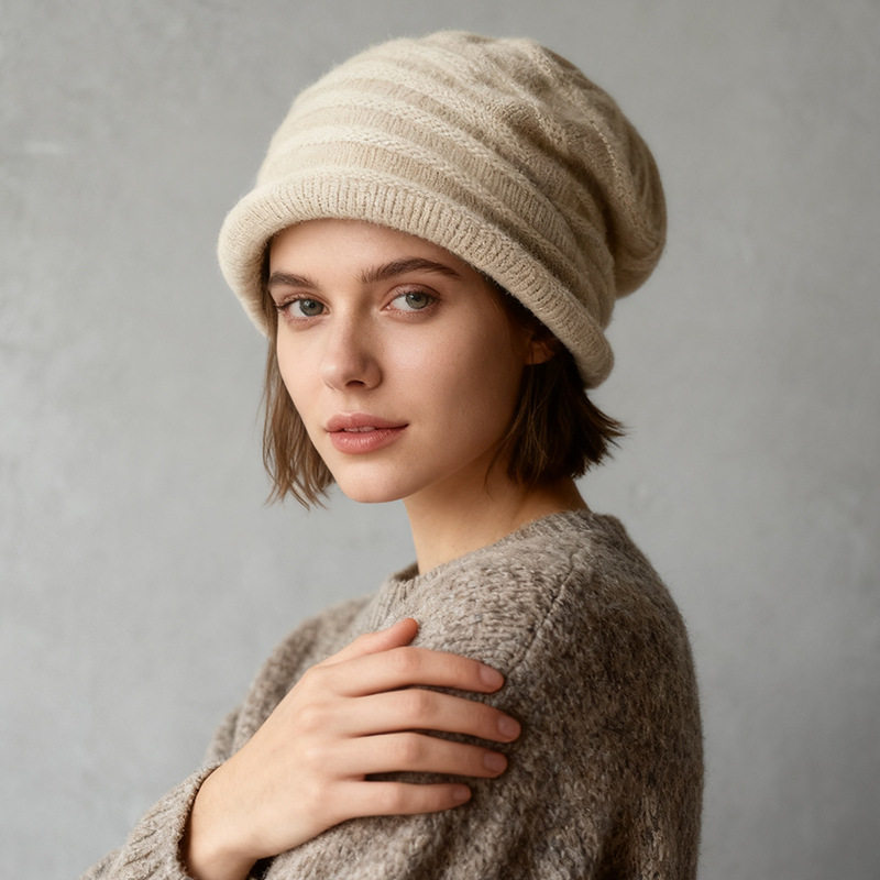 Women's 100% Cashmere Slouchy Beanie – Cashmere Winter Hat in Apricot