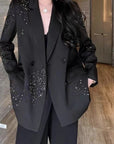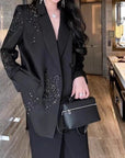 Women’s Business Diamond Suit Jacket – Elegant Street-Fashion Blazer with Petal Sleeves